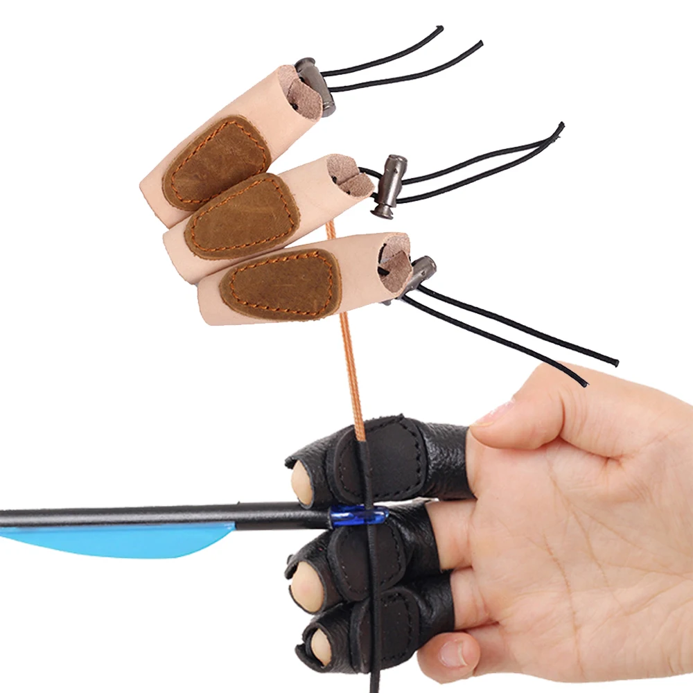 3 unids/set de cuero de vaca tiro con arco 3 dedos protección tiro con arco Punta de mano cuna protector de dedo guante