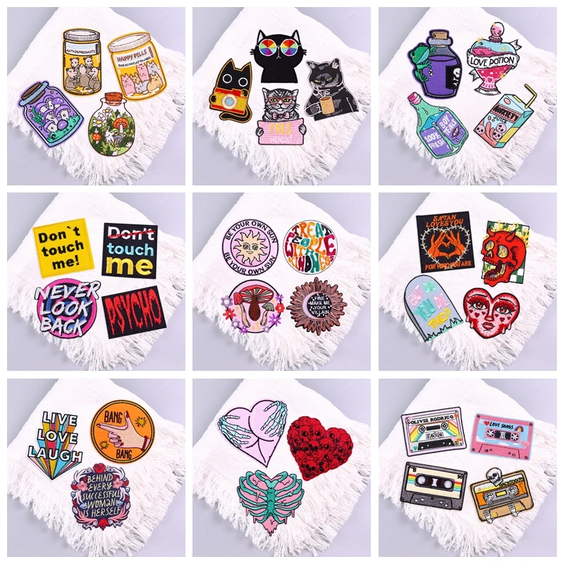 Juego de 4 piezas, parches para planchar para ropa, parches fusibles de hip hop, parches bordados para ropa, regalo de apliques