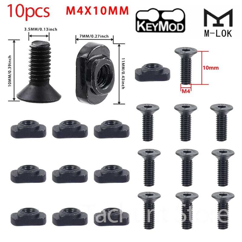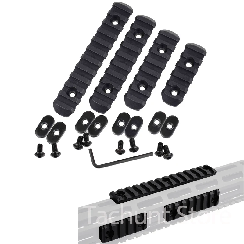 Juego de 4 Rieles Tácticos Moe M-Lok Picatinny de Nailon, Juego de Tuercas en T M-LOK Keymod, Juego de Tornillos M4 M5, 10 Piezas de Riel Picatinny de 20 mm, Riel Rife