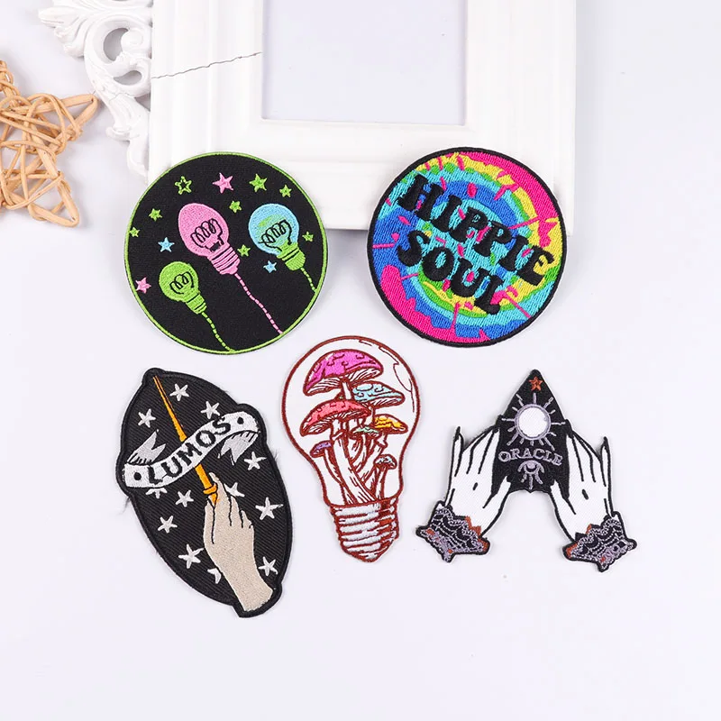 Juego de 5 parches mágicos para planchar, parches bordados de alma Hippie para ropa, apliques de bombilla para mochila
