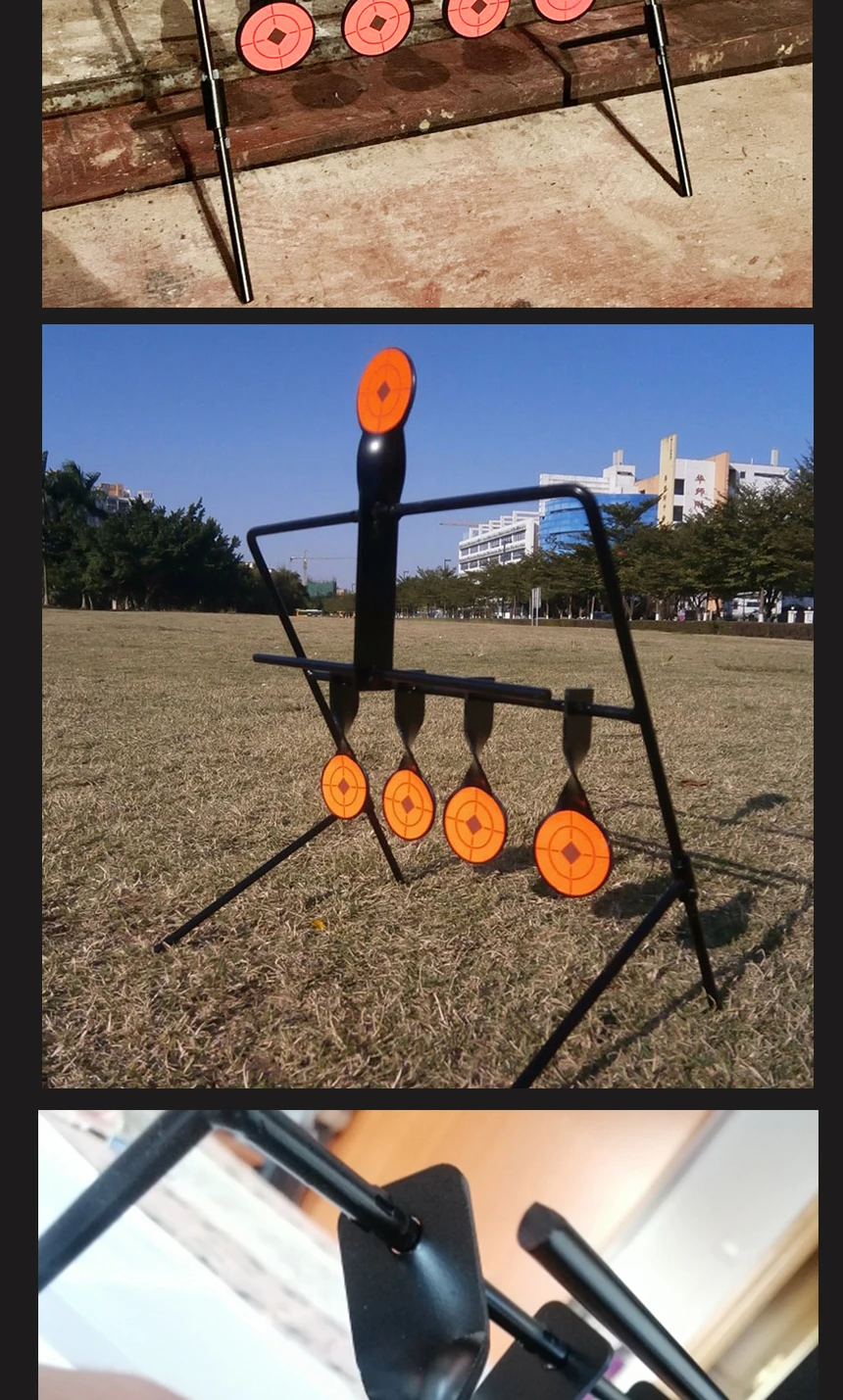 Hecho de acero resistente, la fila inferior de objetivos se mueve hacia arriba y fuera del camino cuando