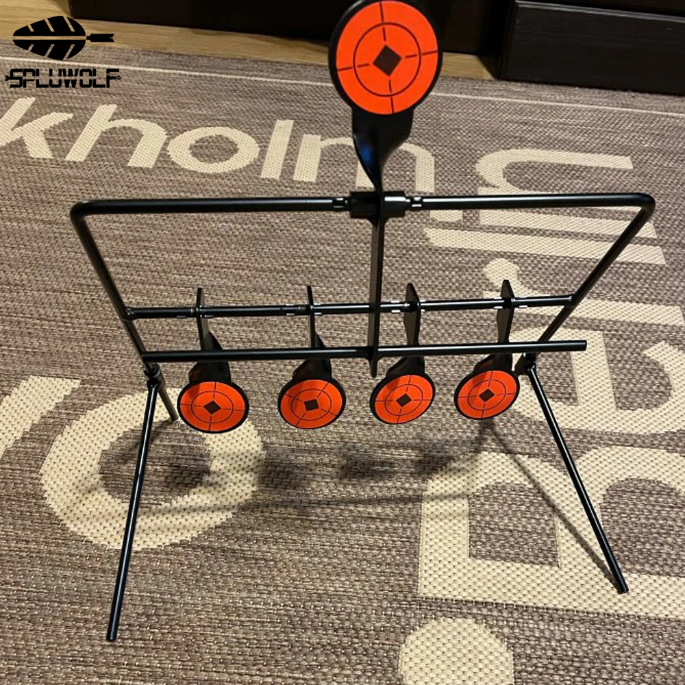 ¡Oferta! Juego de objetivos de tiro de Metal con Rifle de pistola giratoria y reinicio automático de 5 objetivos para entrenamiento de calibre. 177 o. 22