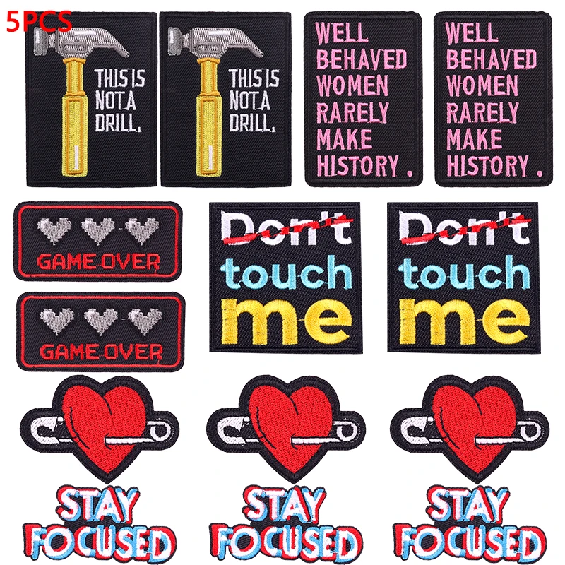 Juego de 5 uds. De parches termoadhesivos con eslogan de advertencia para planchar para ropa, insignias cosidas con letras negras, Steicker, regalo DIY