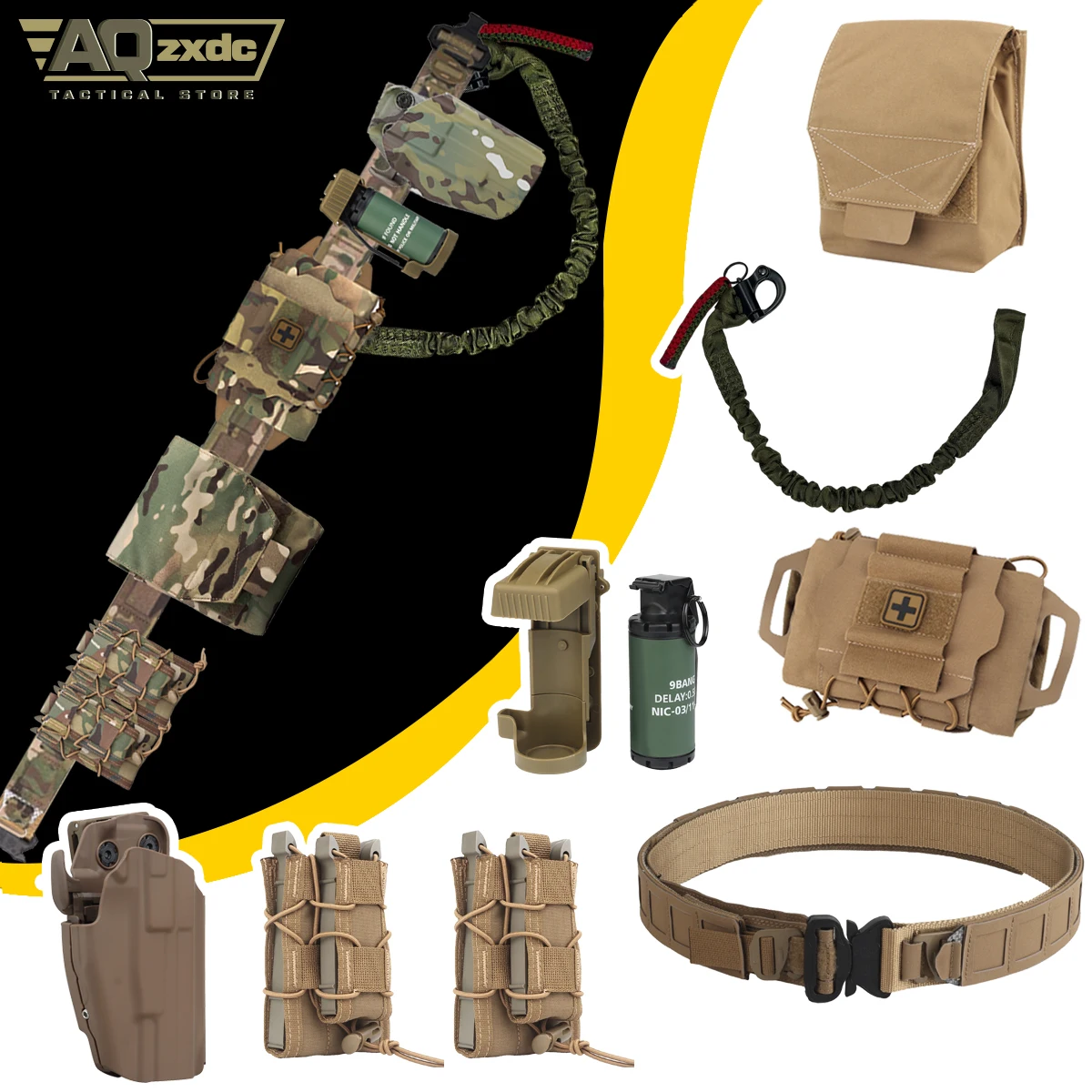 Juego de Airsoft PHC con funda de dibujo rápido para mano derecha, bolsa Mag de campo, bolsa ReFlexIFAK de primeros auxilios para niños y artículos diversos, Granada modelo M18