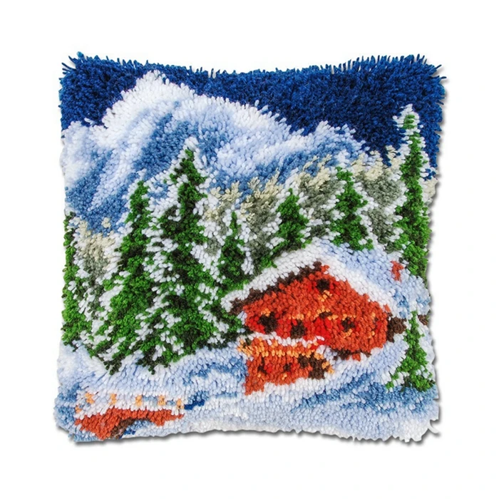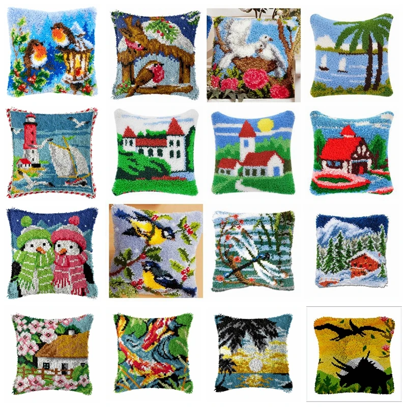 Juego de almohada de bordado de gancho de pestillo de serie de paisaje, botones de punto de cruz para costura, Kits de alfombra, fundas de almohada, knooppakket
