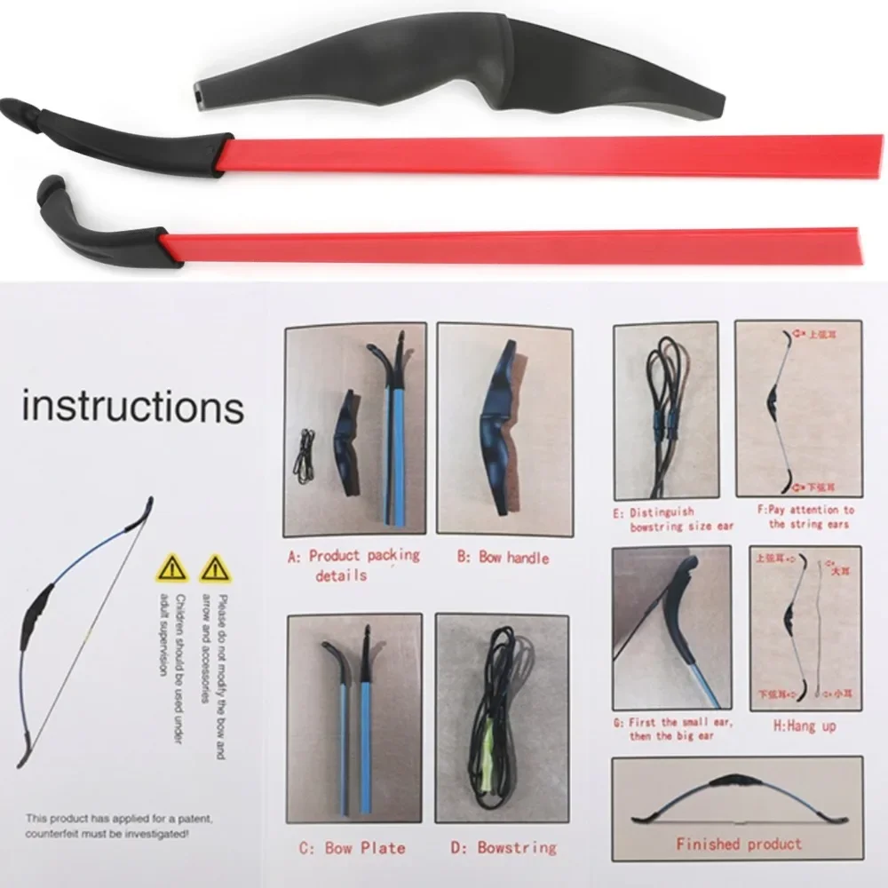 1 juego incluye arco:(1 * arco, 1 * protector de dedos (ya instalado en la cuerda del arco),1 * protector de brazo, 2 * flechas, 1 * soporte de flecha, 1 * instrucciones).