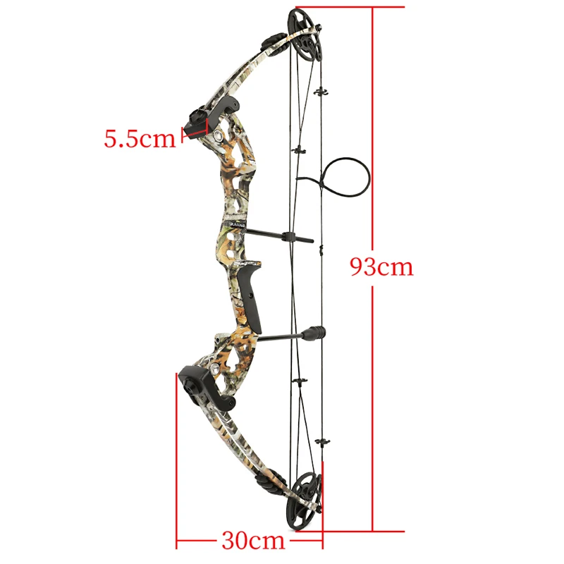 Lazo ---- Incluido en la Caja:1 arco compuesto; un par de miembros de arco de absorción de impactos (instalados en el arco); 1 mirilla de cable (instalada en el arco); 1 Parada de cuerda de arco (instalada en el arco); 4 amortiguadores de arco (instalados en el arco); 2 llaves; 1 manual.