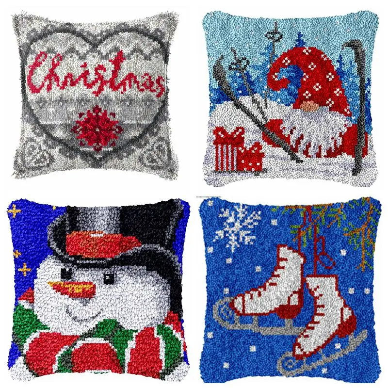 Juego de bordado navideño, Kit de gancho de pestillo de muñeco de nieve, Kits de alfombra, nudo de Navidad, paquete de almohada, manualidades bordadas, cojines
