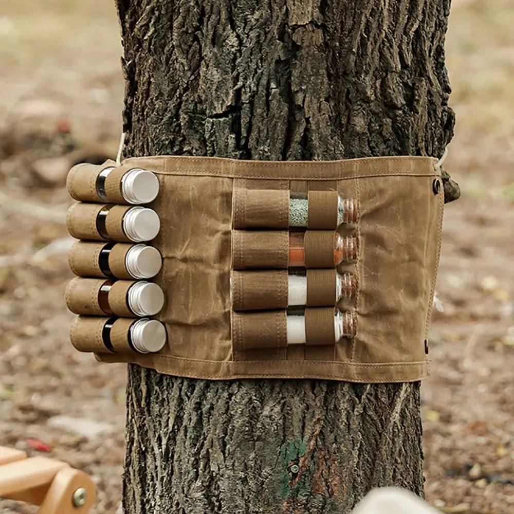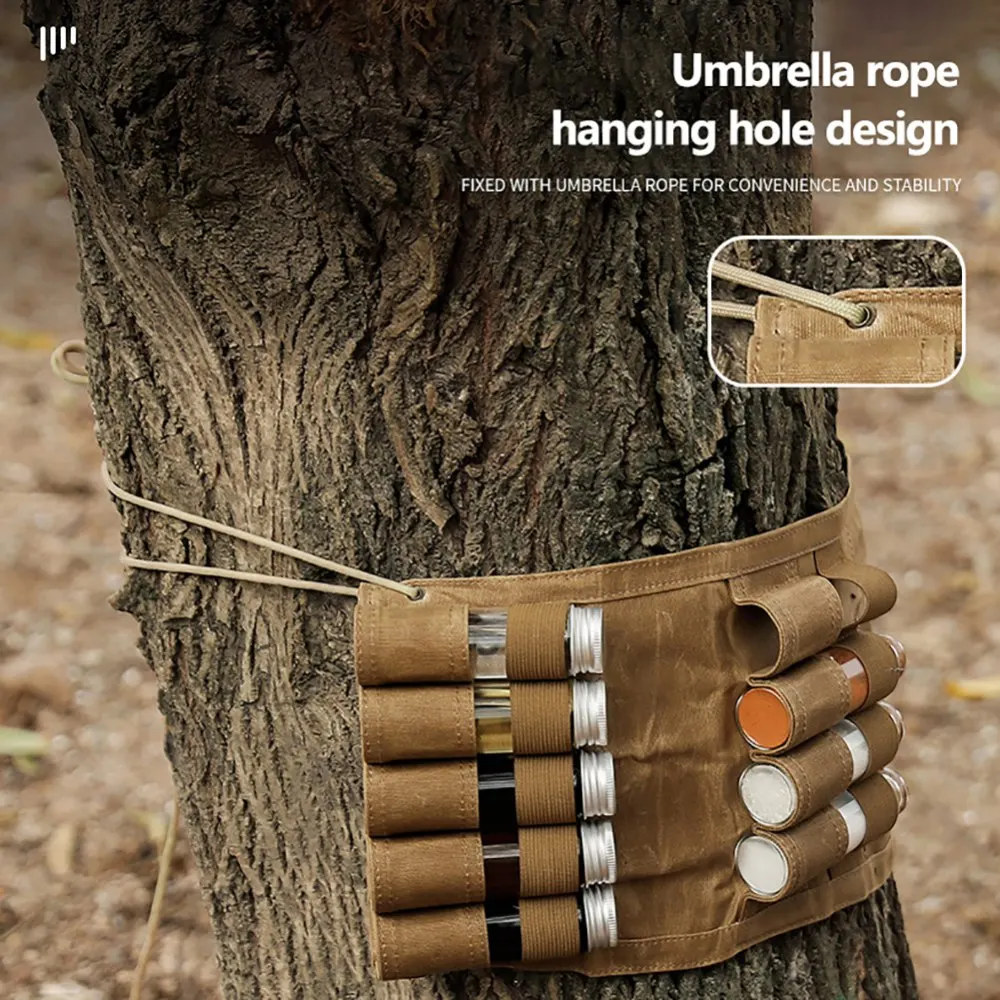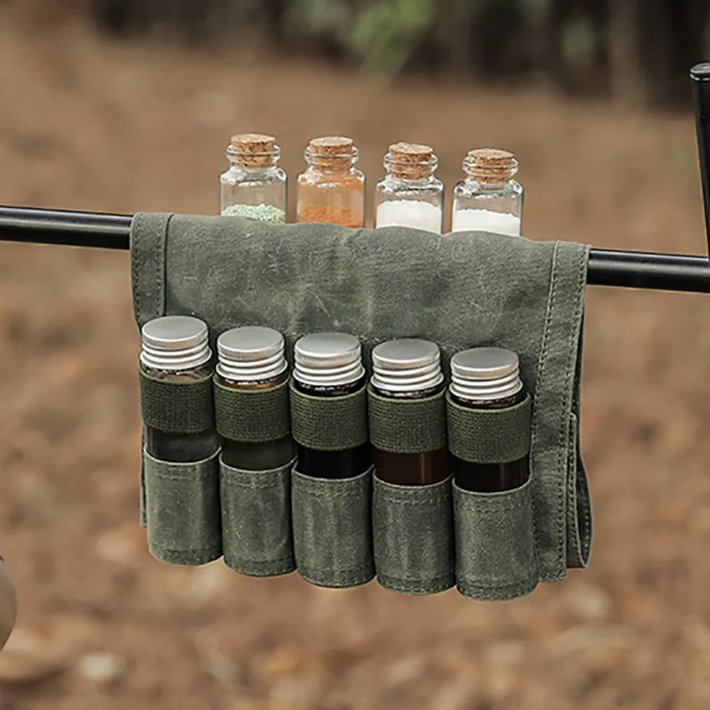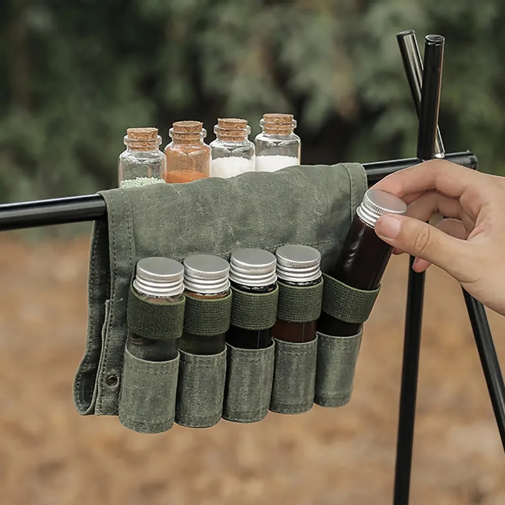 2, de gran capacidad Diseño: La bolsa de almacenamiento está equipada con 9 compartimentos de especias separados, que pueden satisfacer sus necesidades reales de almacenar diferentes condimentos mientras acampa o camina.