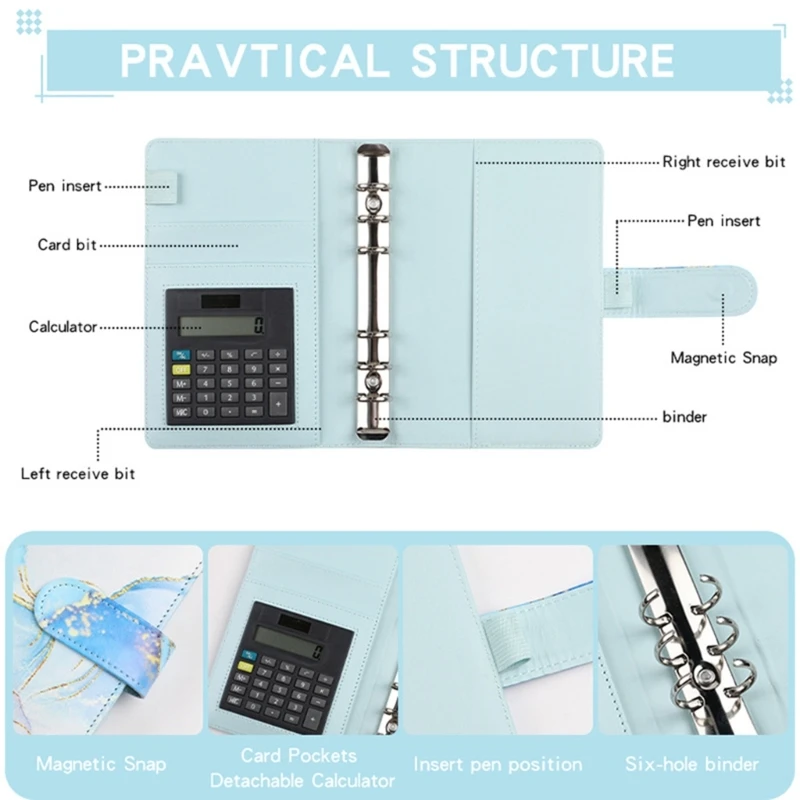 Ranura elástica para portalápices, múltiples bolsillos para tarjetas, sobre transparente con cremallera y bolsillos para tarjetas, anillos de carpeta de metal, cierre de botón. Todos estos ingeniosos diseños son convenientes para sus tarjetas organizadoras, hojas de presupuesto y efectivo.