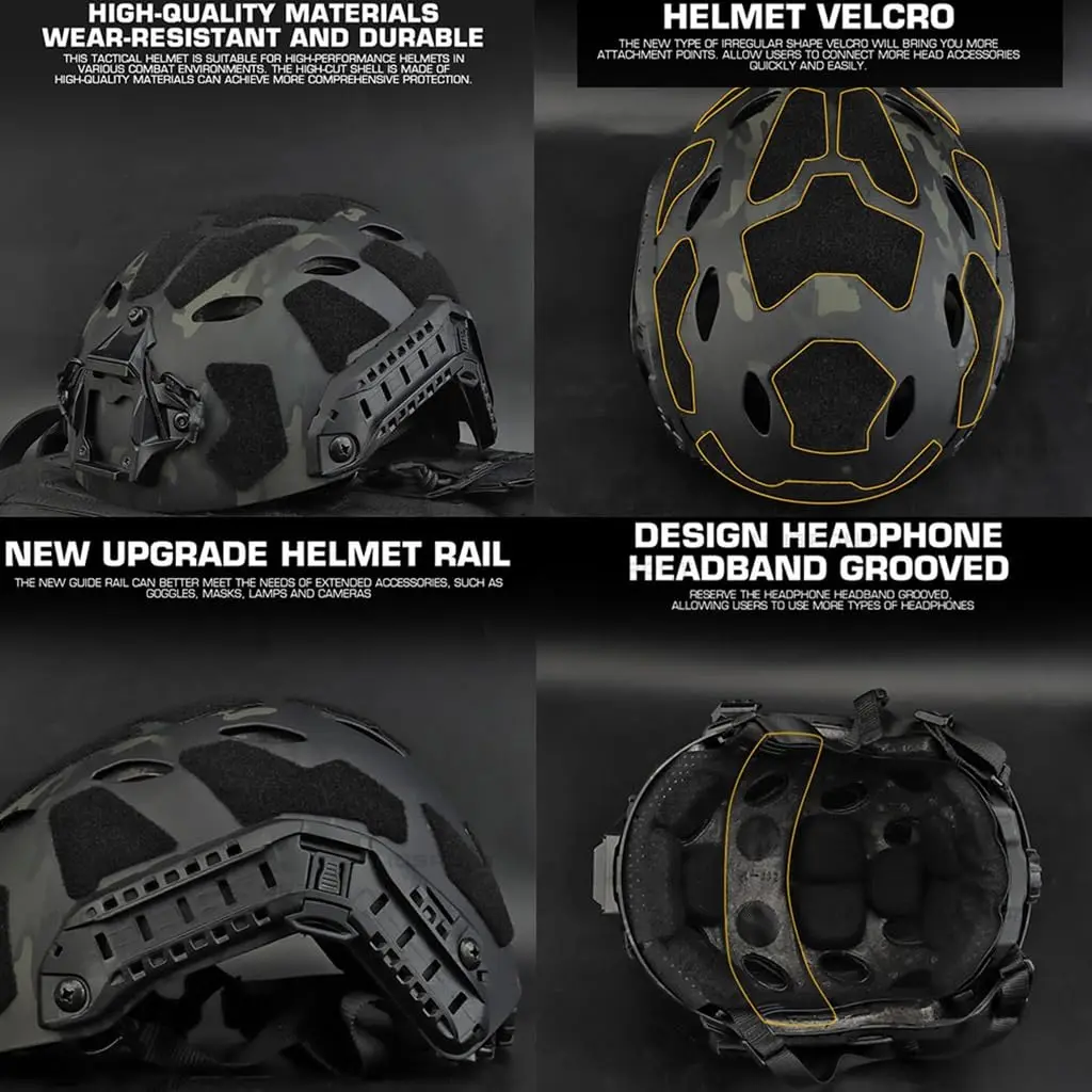 Juego de casco ABS Airsoft con auriculares de comunicación, luz de señal táctica, antorcha, binoculares NVG, modelo y montaje, equipo de tiro de caza