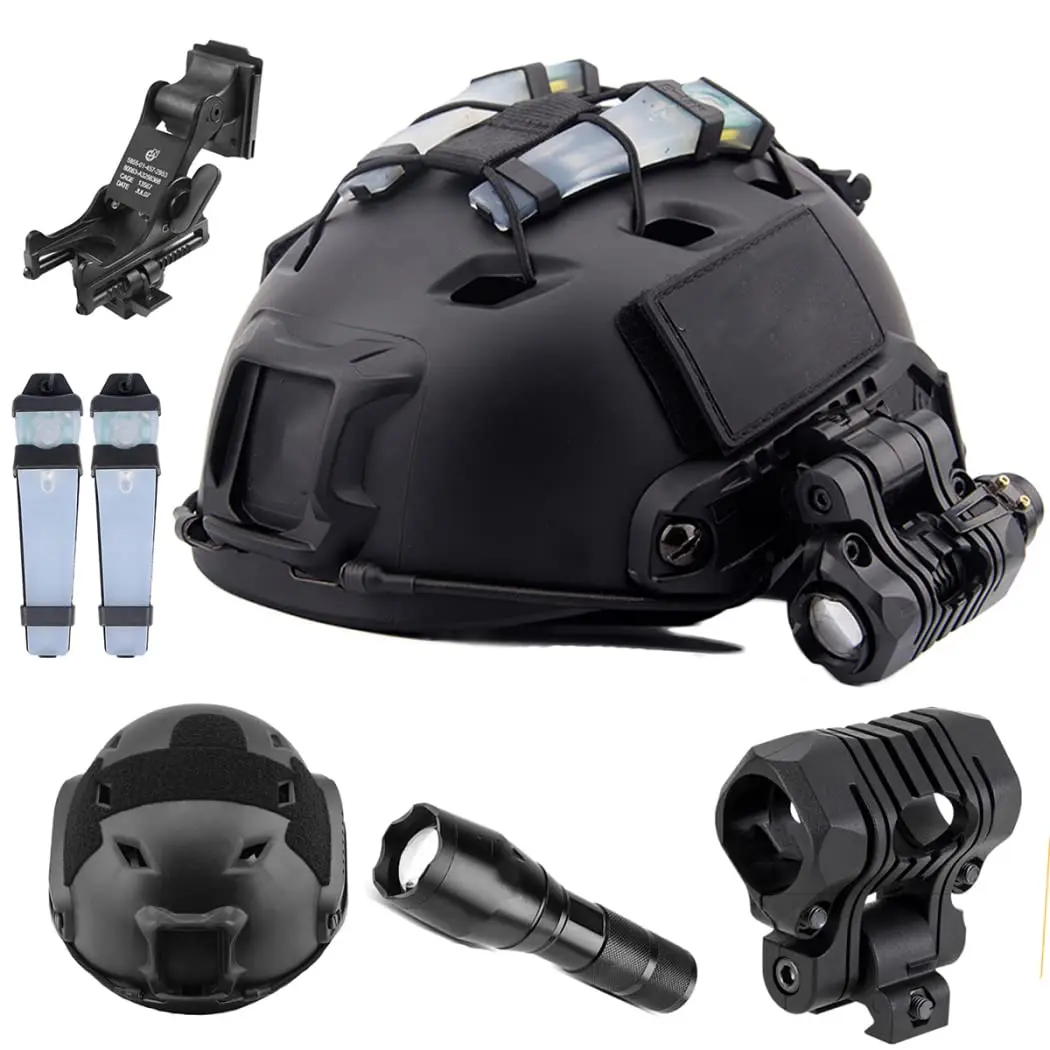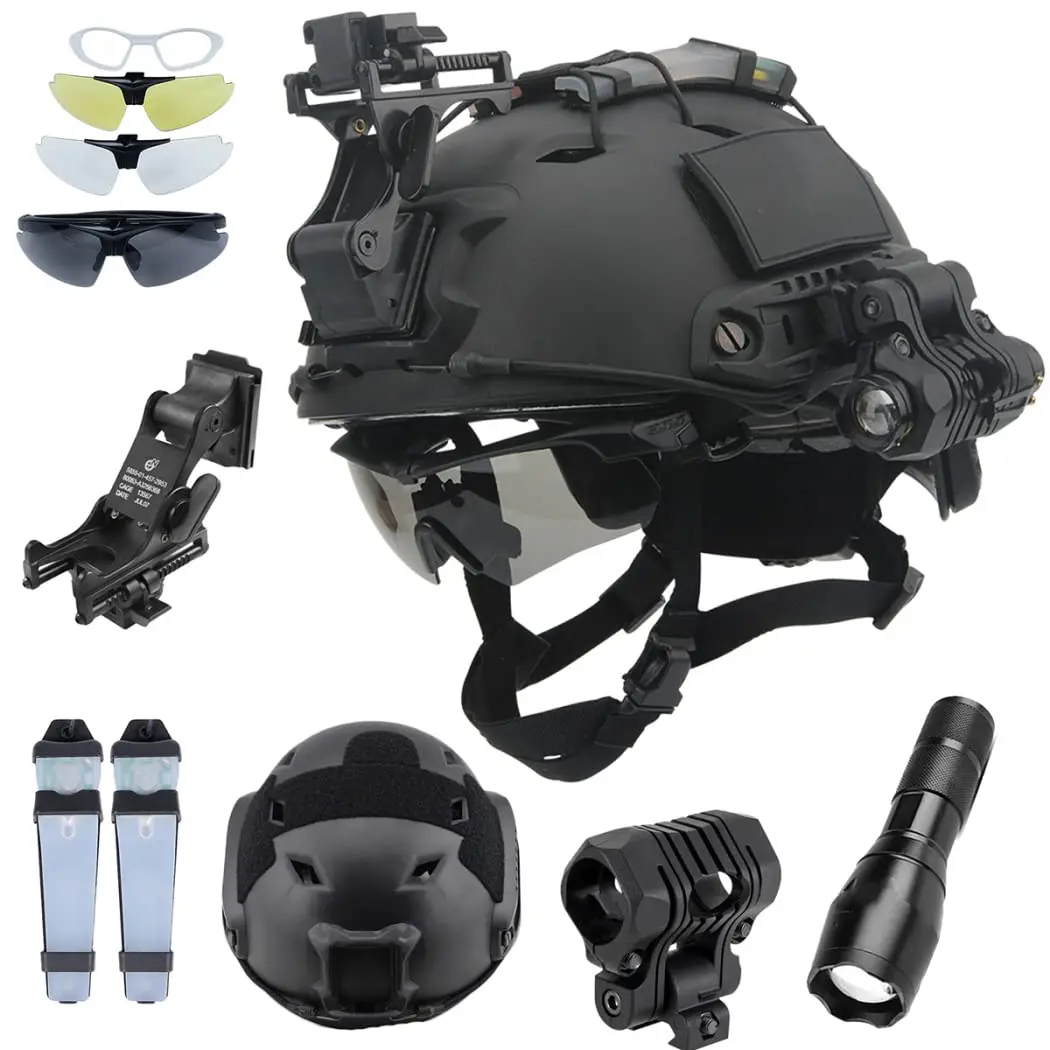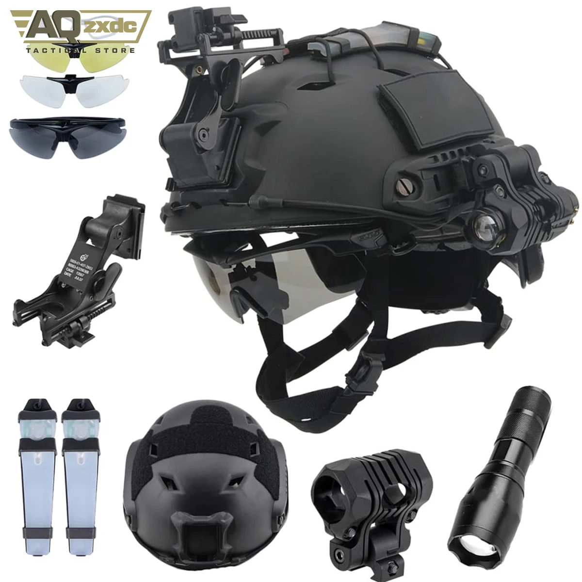 Juego de casco Airsoft, gafas tácticas, luz de señal de casco, linterna táctica y gafas de visión nocturna (Nvg), soporte de montaje