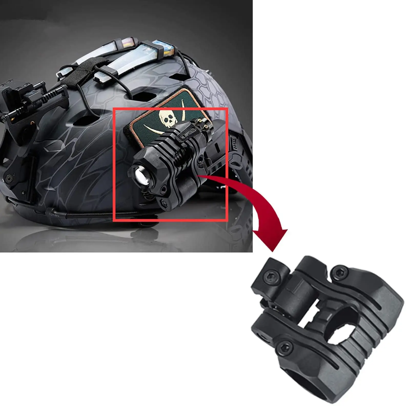 Soporte para gafas (NVG) Construido con un metal completo, diseño de giro hacia arriba y hacia abajo, cambios de ángulo de brazo ajustables NVG, compatible con PSV-7 o PSV-14.