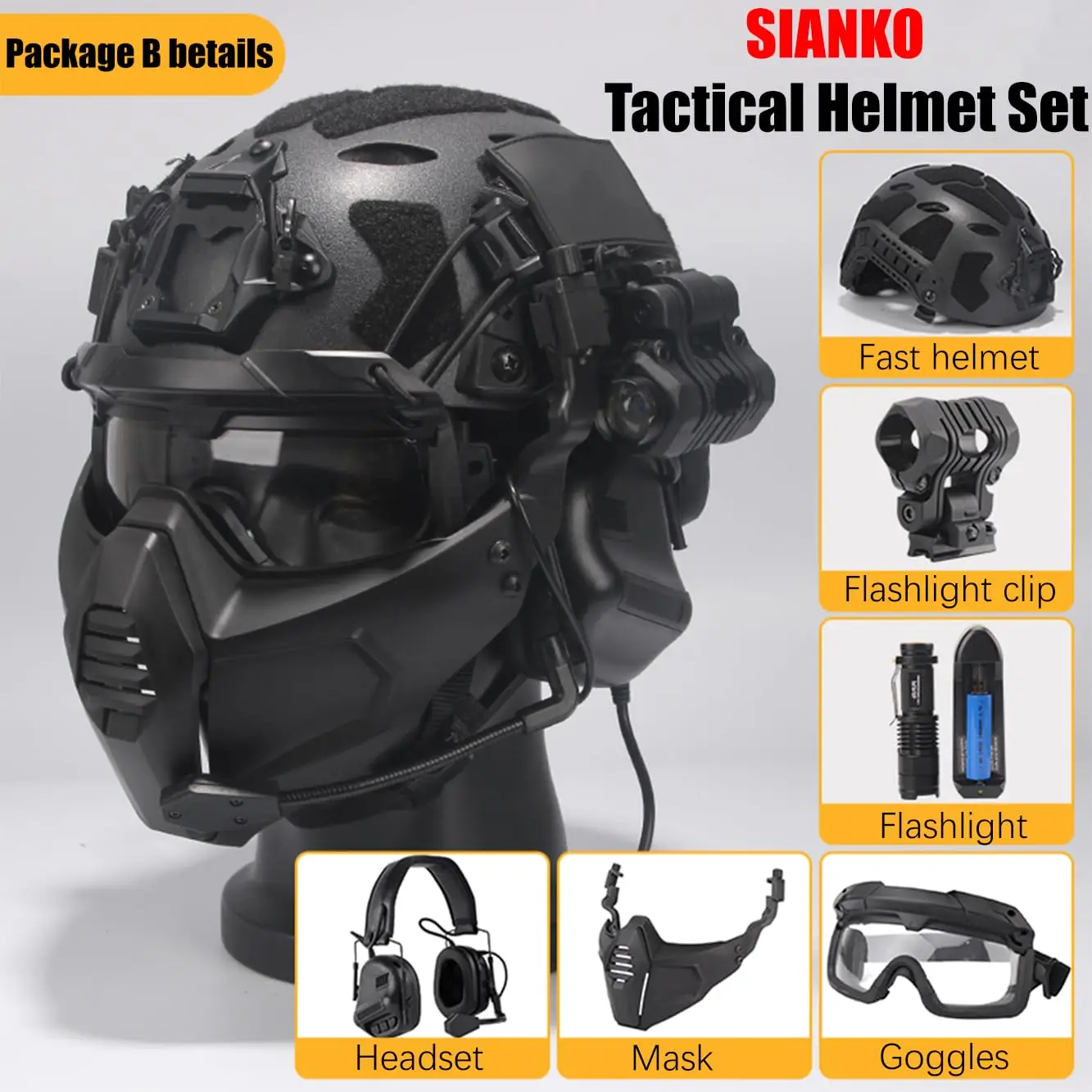 El conjunto de casco táctico le ahorra tiempo a la hora de combinar y elegir equipo táctico. Con él, puede participar en cualquier actividad táctica en cualquier momento.