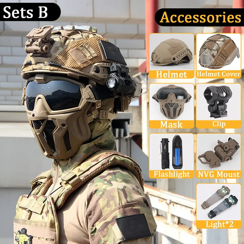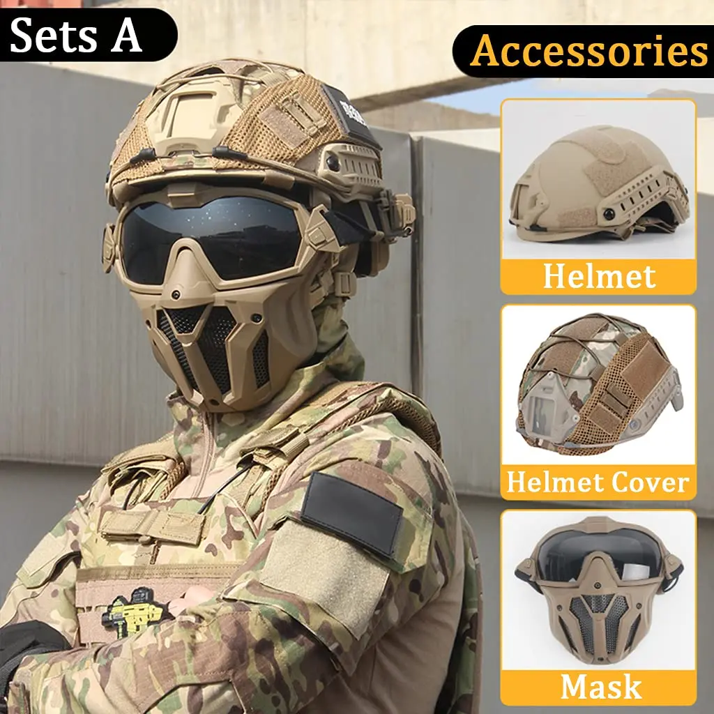 ● Combinación súper perfecta: casco con máscara Táctica. Dale al usuario 360 ° protección completa, protege tu cabeza y no se dañará en el juego de paintball.