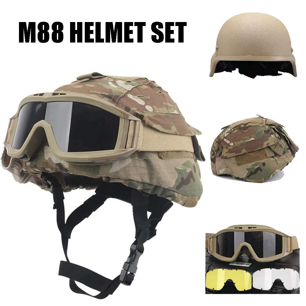 Juego de casco táctico M88 con gafas tácticas antivaho y funda de camuflaje para casco para Airsoft, BBS, paintball, tiro al aire libre, protección