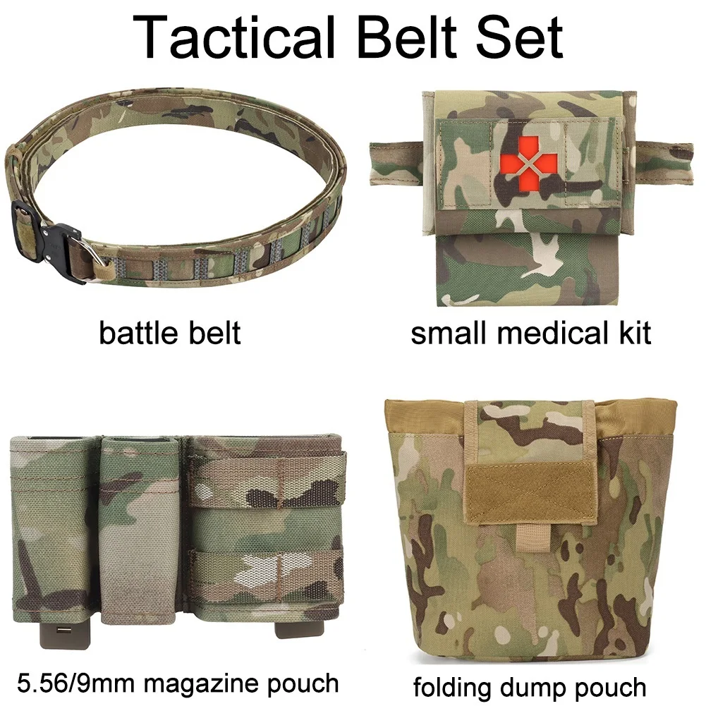 ➤ Juego de cinturón táctico perfecto: 1x cinturón táctico, 1x bolsa Mag de 5,56 + 9mm, 1x bolsa médica, 1x bolsa de descarga; además de cumplir con el equipo de transporte diario, también es muy guay.