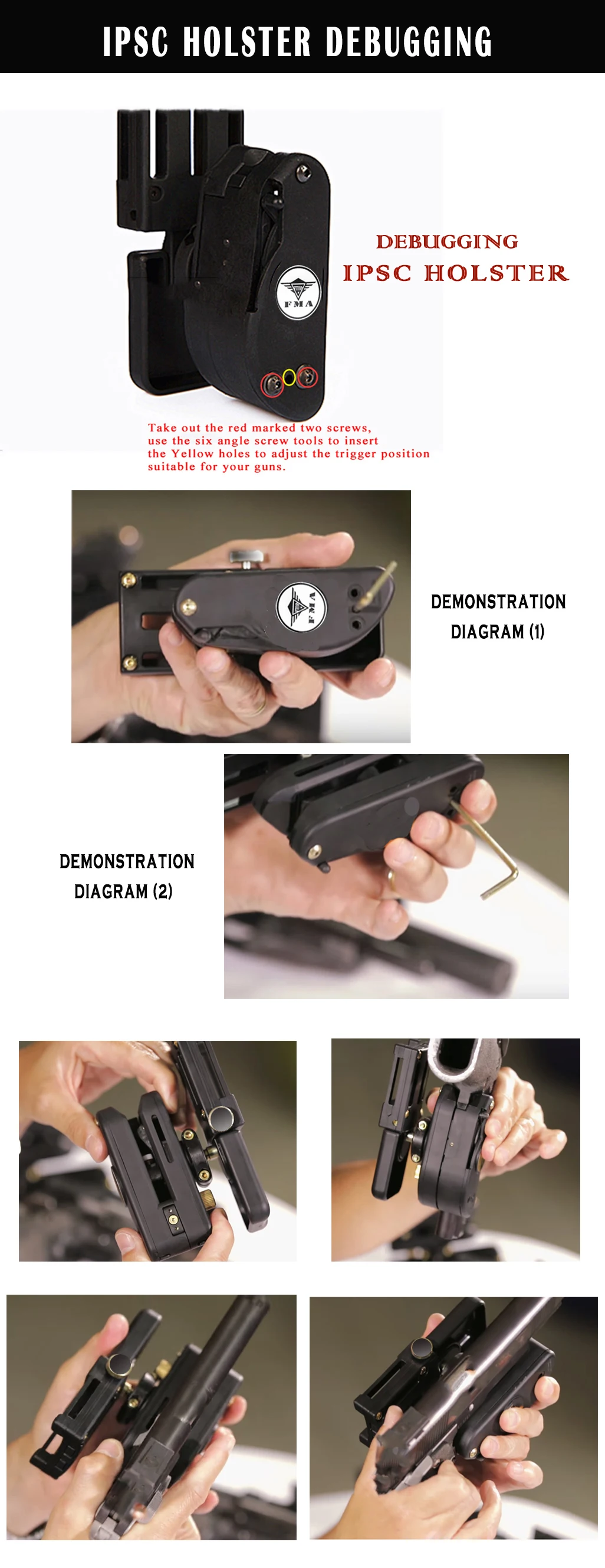 RS7403: Funciona con el modelo de pistola, por ejemplo: Hi-Capa y 1911 y IPSC Pistol (debe depurar la funda es adecuada para el tamaño de su pistola)