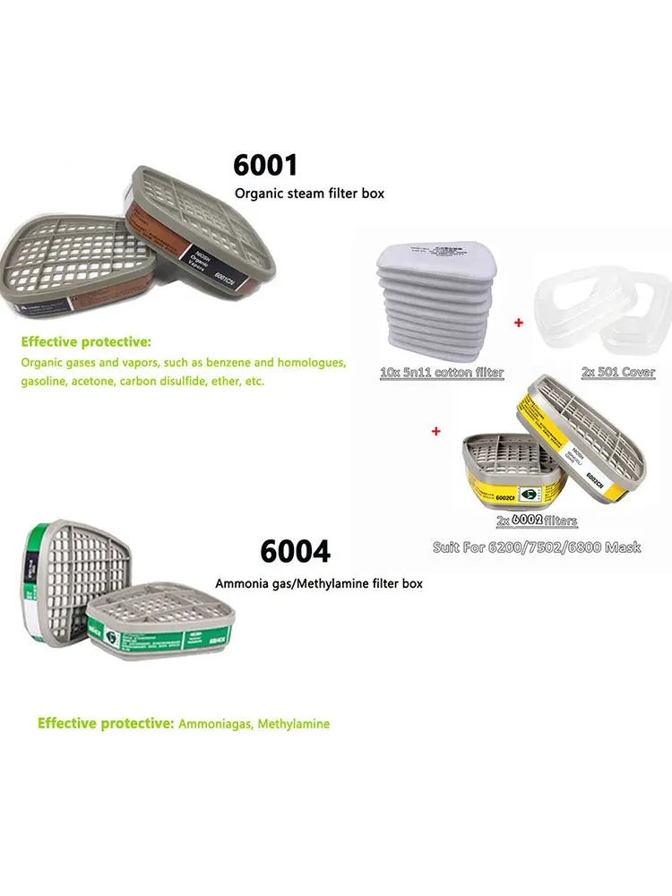 Juego de filtros de algodón para mascarillas, accesorio químico para respirador, 6004/6002/6001, 501, 5N11, 6200/7502/6800