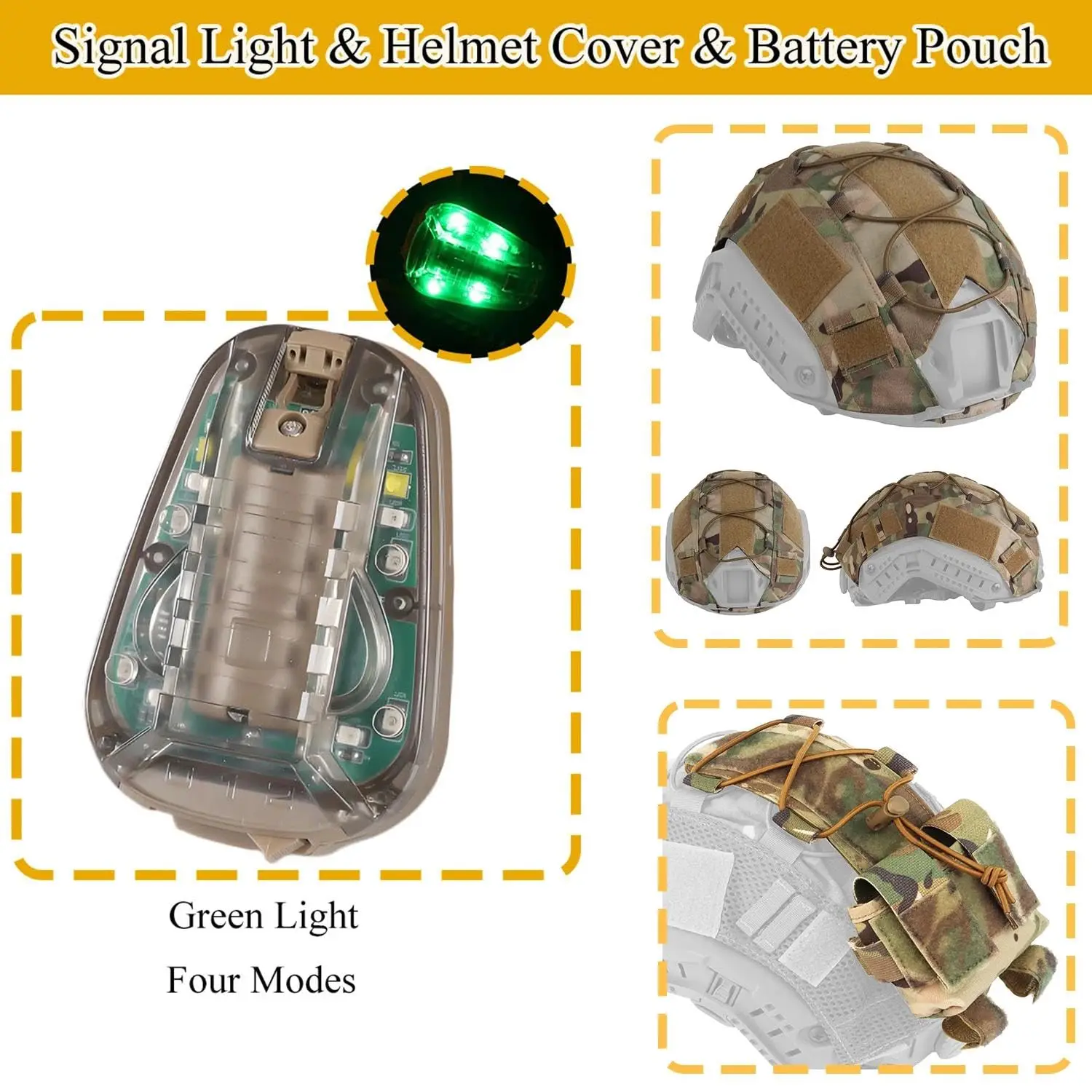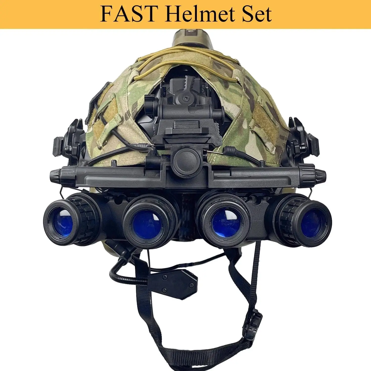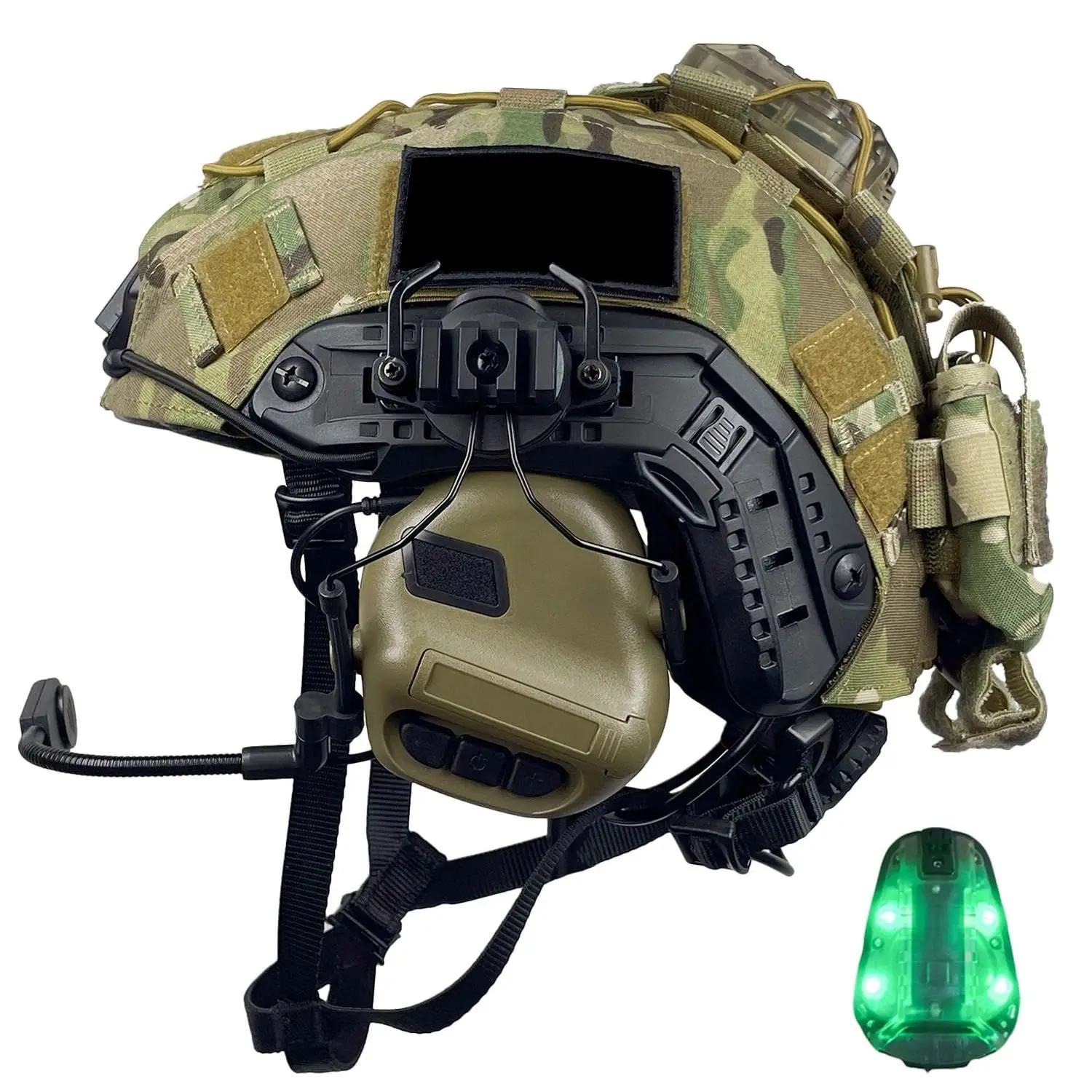 Kit completo de casco Airsoft (7 componentes esenciales): casco RÁPIDO tipo PJ, auricular táctico, funda para casco, simulado GPNVG-18, soporte L4G24, luz para casco y bolsa de contrapeso de batería, todo para su configuración táctica