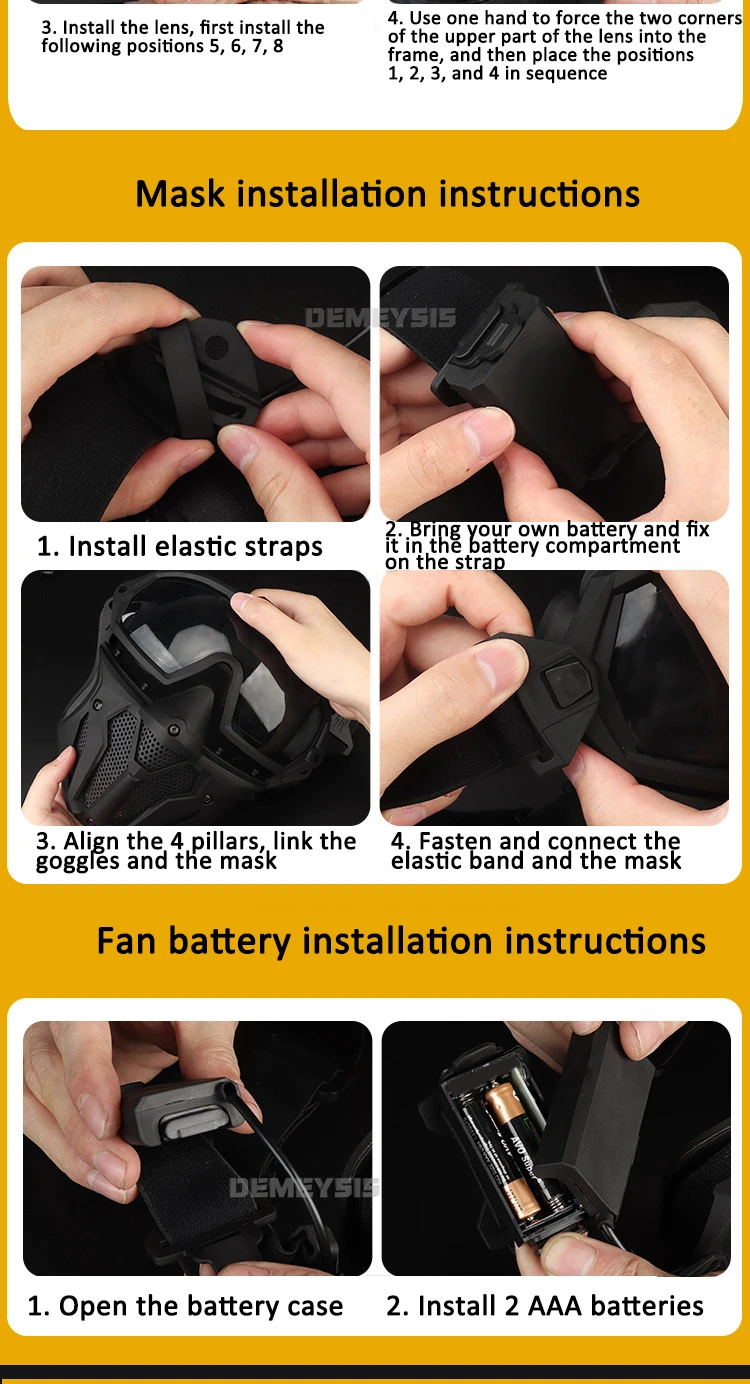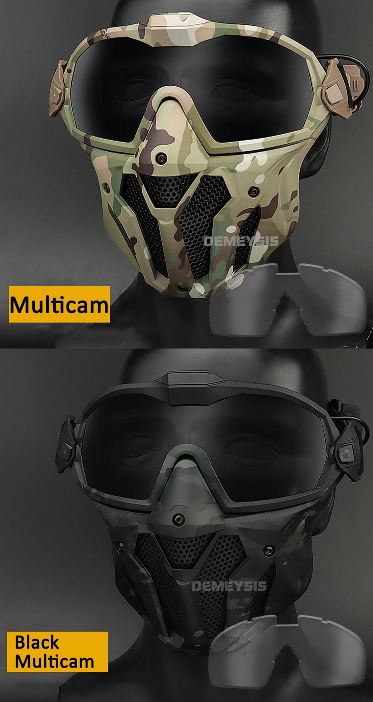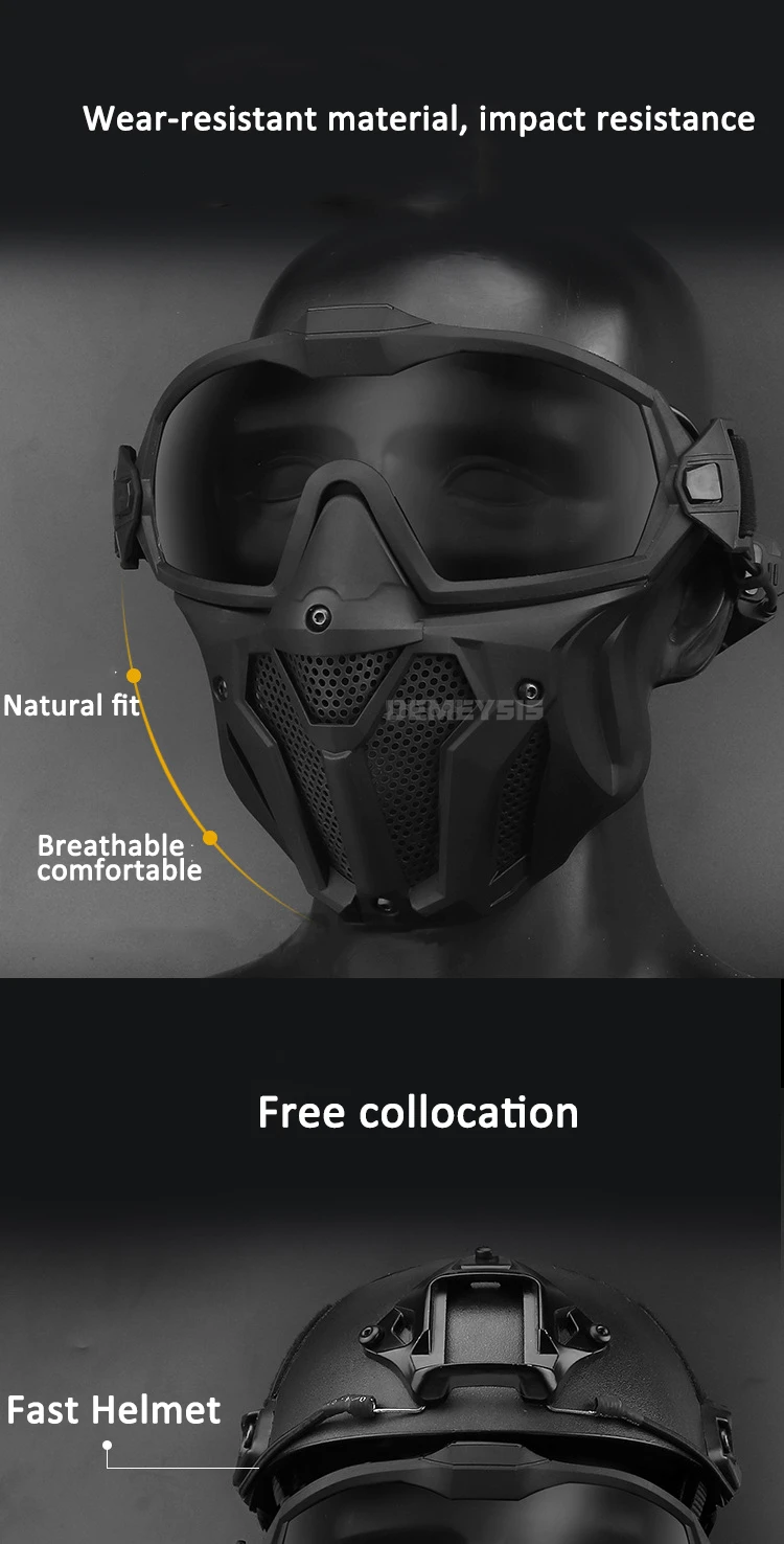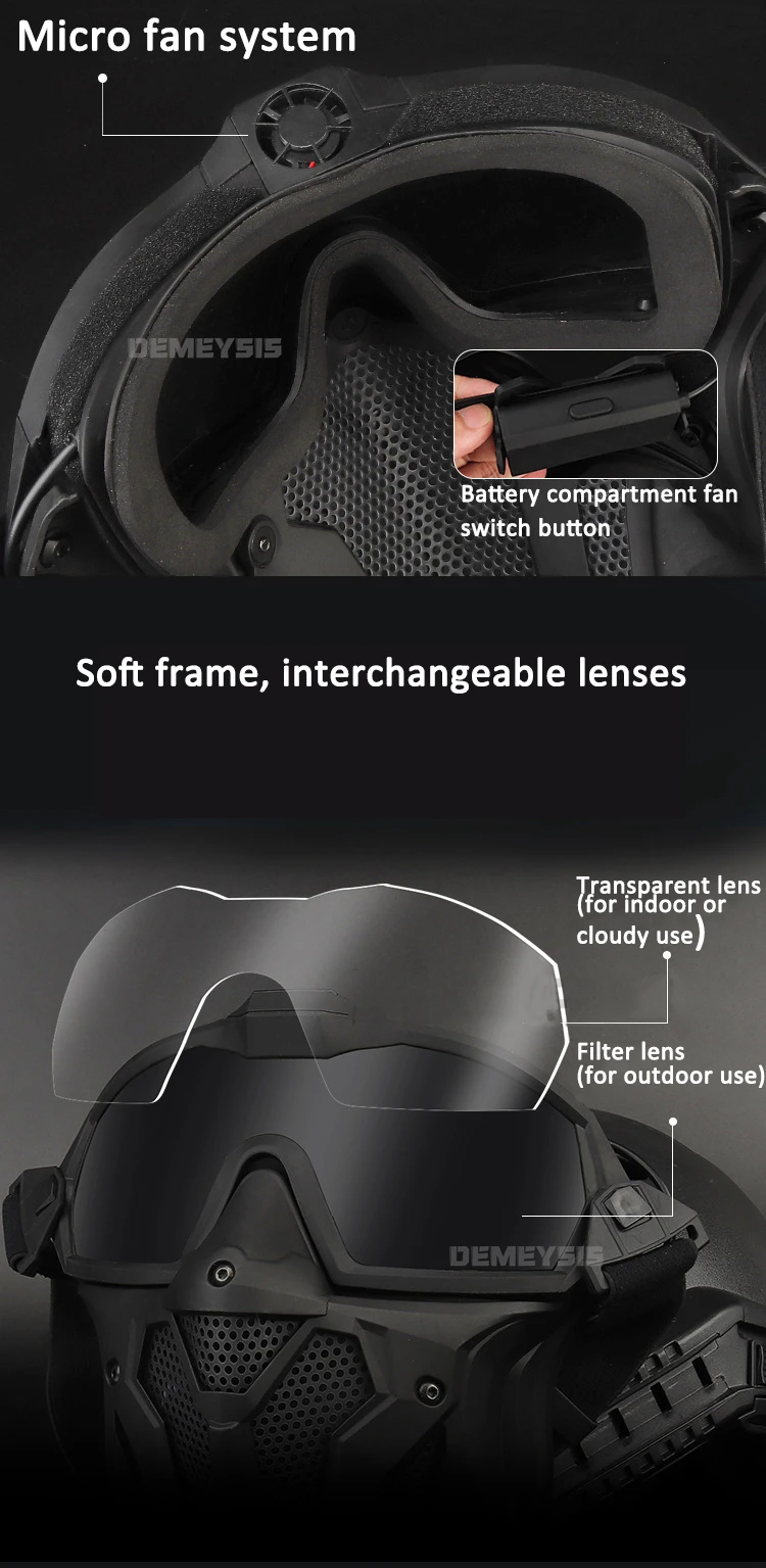 Juego de gafas de máscara táctica con microventilador, protección de cara completa Airsoft, máscara antiniebla desmontable para tiro de Paintball, juego de guerra CS