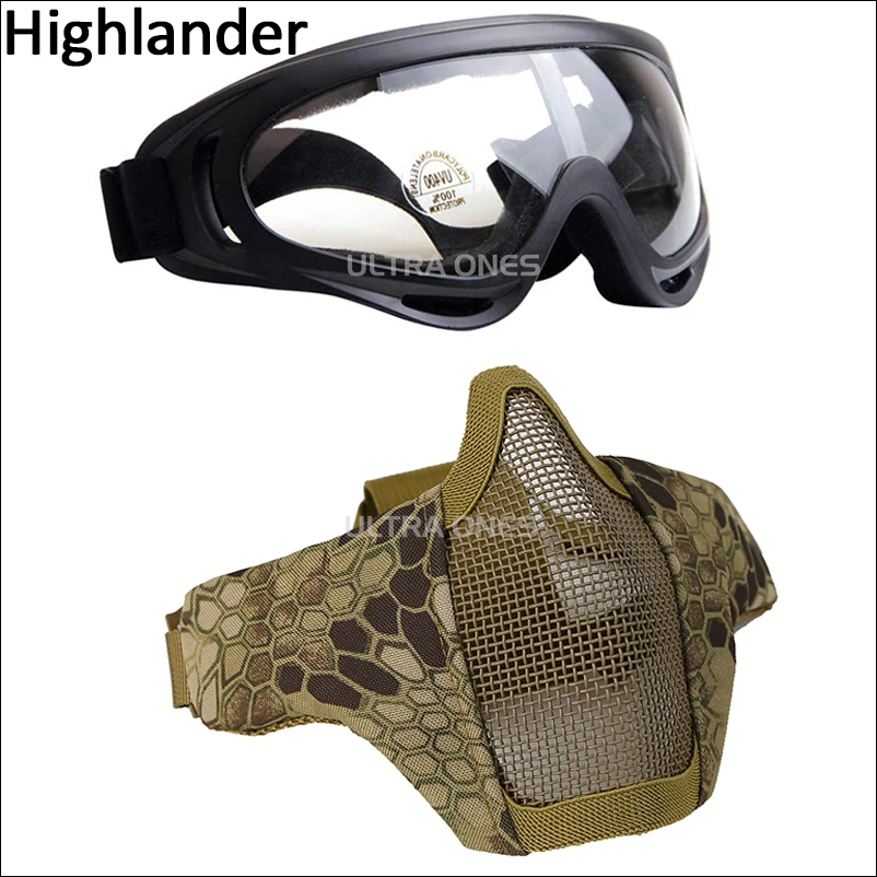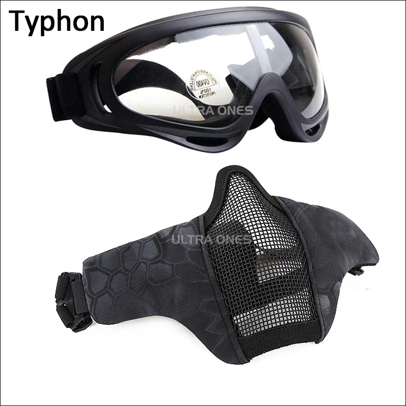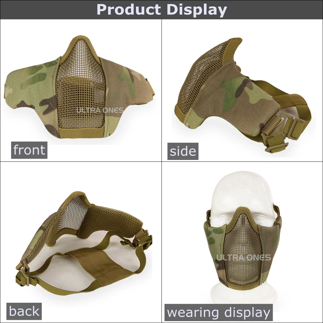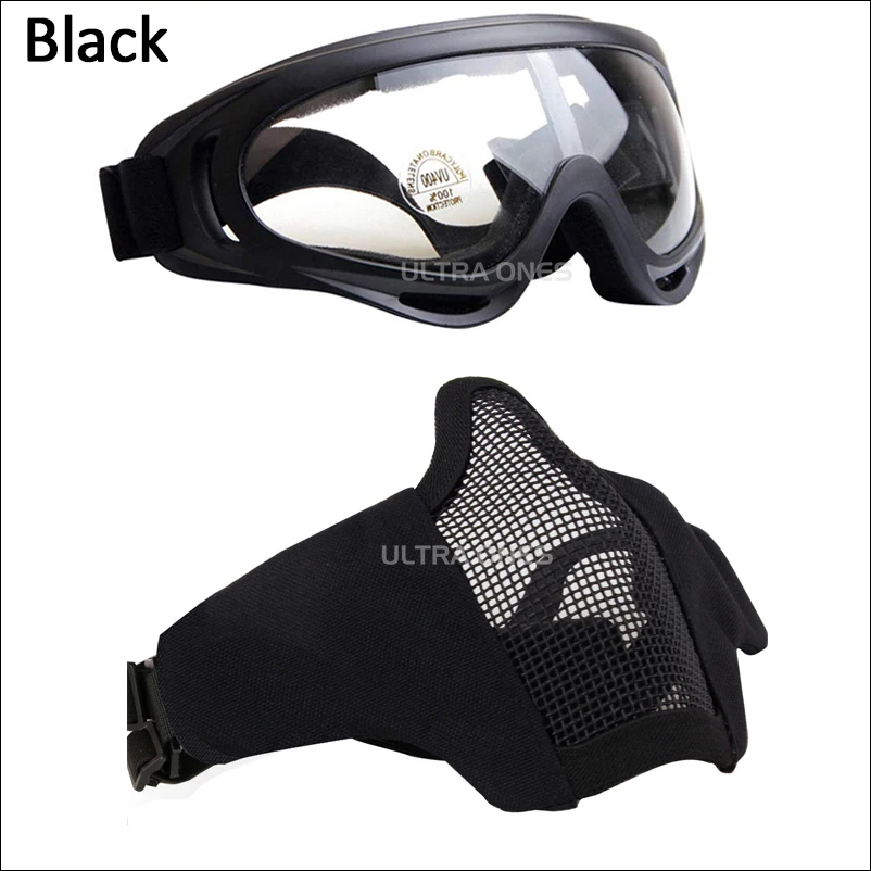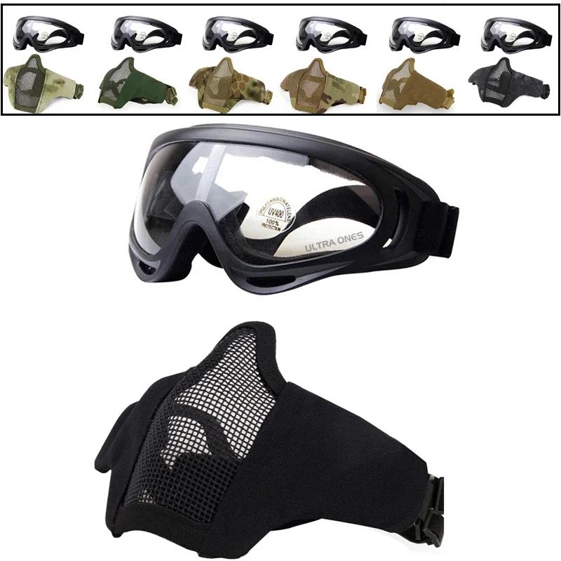Juego de gafas y máscaras tácticas, máscaras de malla de acero plegables de media cara para tiro al aire libre, protección para juegos de Paintball Cs