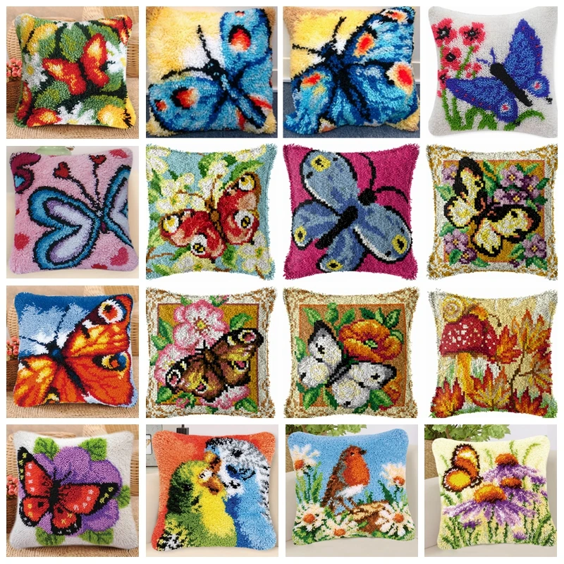 Juego de ganchos de pestillo de estilo mariposa, Kit de gancho de pestillo de bordado, Serie de flores, gancho de pestillo, almohadilla de botón de almohada, paquete de decoración DIY