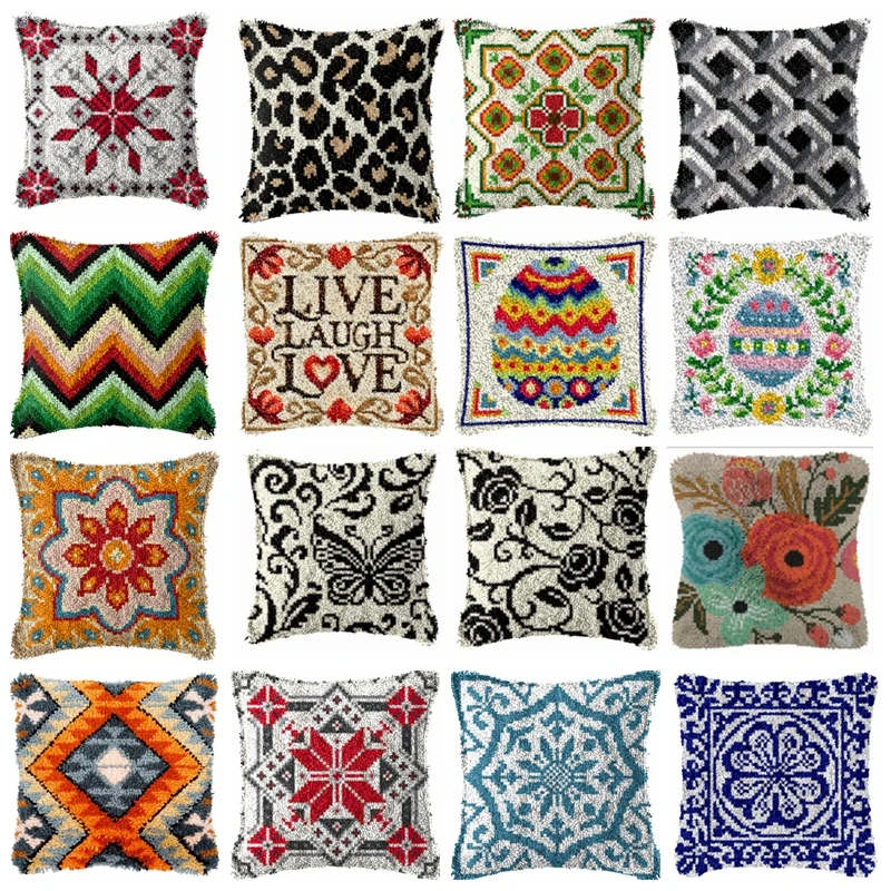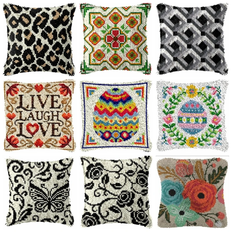 Classic Vintage Pattern Latch Hook Set Leopard Print Pillow With Preprinted Canvas Embroidery Kits Cross Stitch Latch Hook Kit