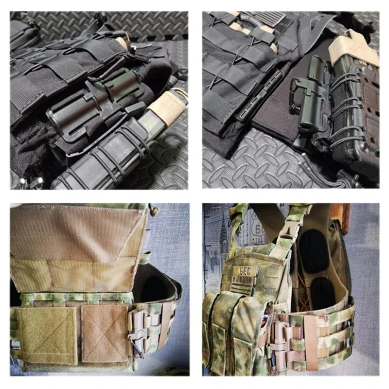 MONTAJE: Adecuado para chalecos o módulos adaptadores de bisagra, con el sistema Molle en la parte trasera.Y también apto para la mayoría de chalecos.