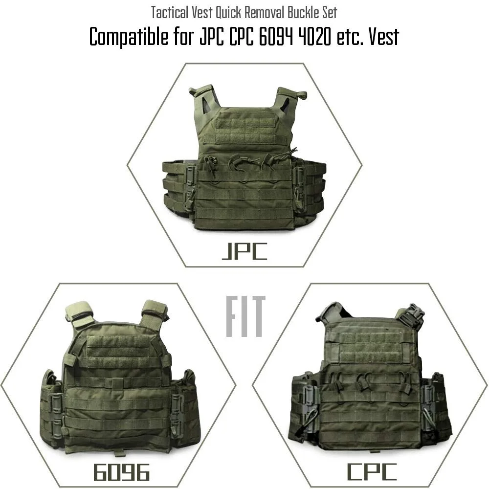 Juego de hebillas de liberación rápida para portadores de placas, equipo MOLLE y paquete táctico, cierres de faja ajustables, accesorios duraderos para armadura corporal