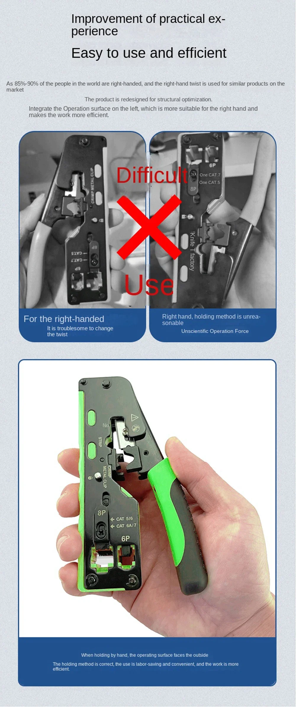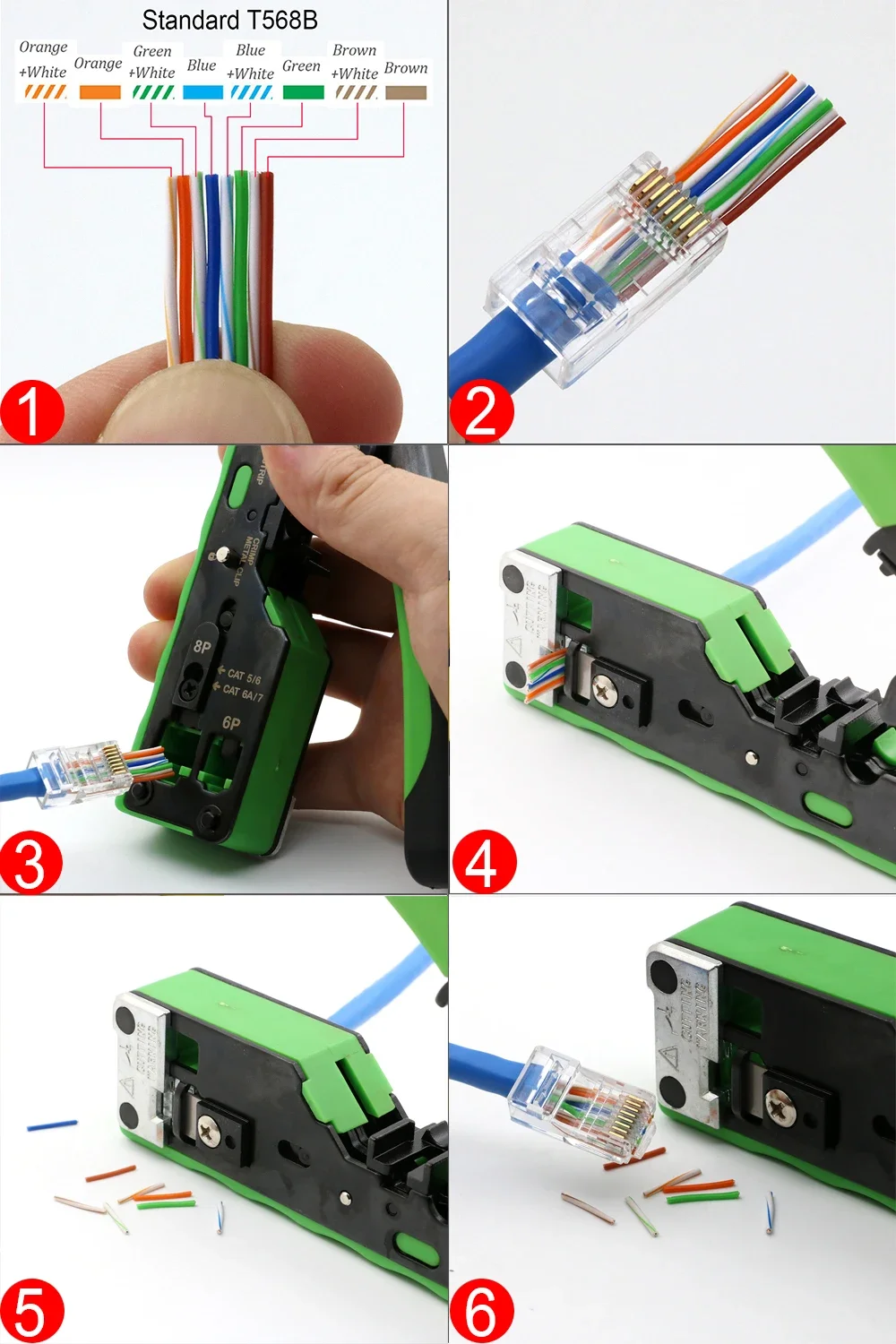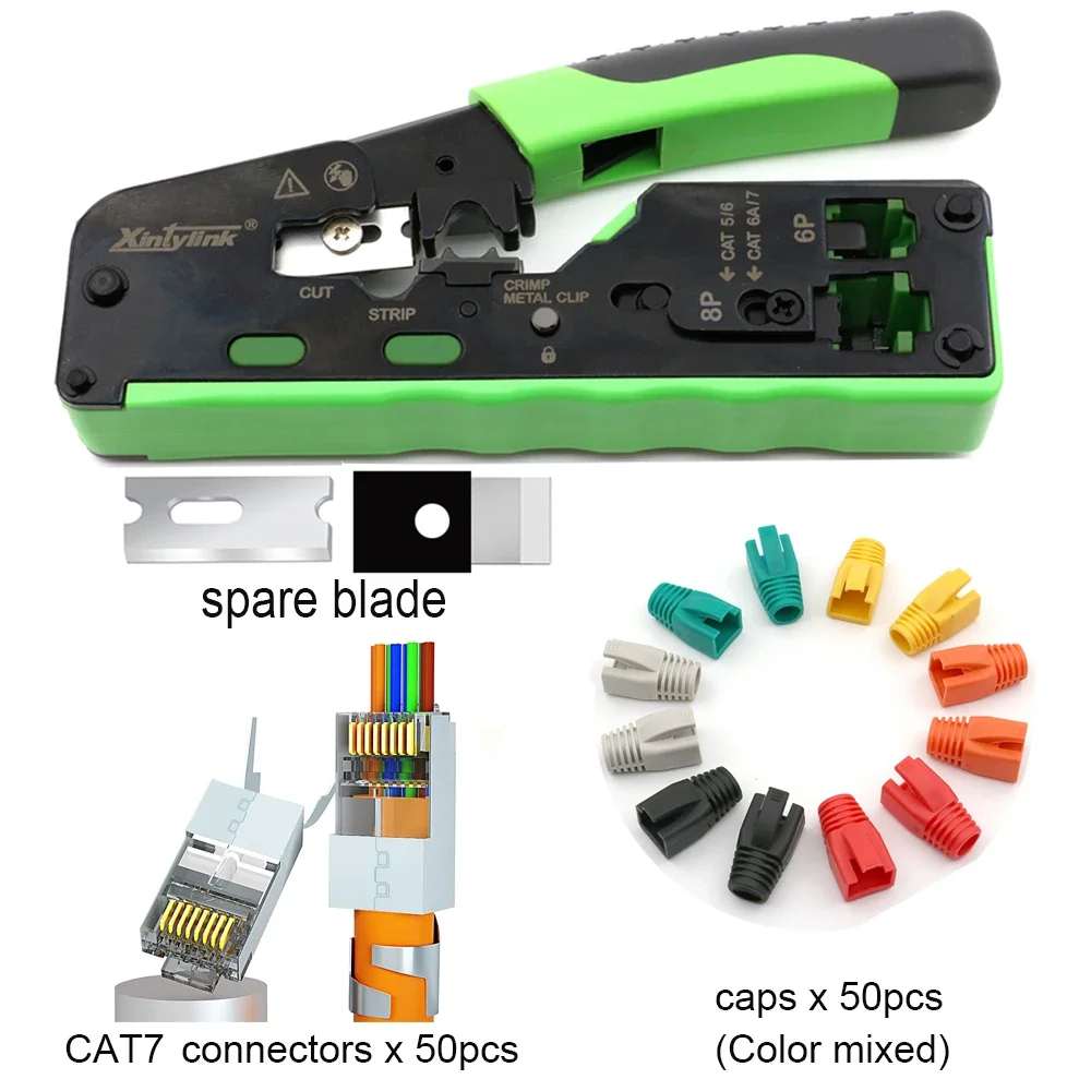 Juego de herramientas de red, alicates de prensado, pelacables ethernet, 50U, CAT7, CAT5, CAT5E, CAT6A, CAT7, CAT8
