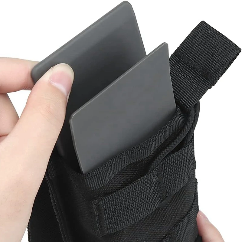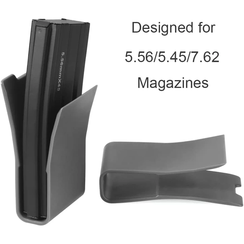 Sobre esto Artículo hecho con material de fibra de nylon, duradero y de alta resistencia Tamaño: 6,5*3*12cm Compatible con 5,56, 5,45, 7,62 y 308 revistas Diseño de clic para dibujar e insertar rápidamente Funciona con bolsillos abiertos de nailon en la parte superior, sin bungies y sin sacrificar la retención de la revista