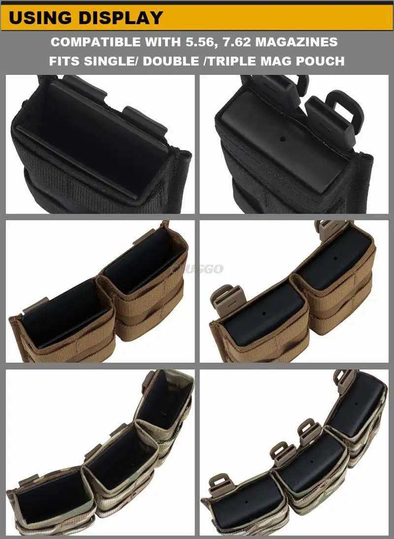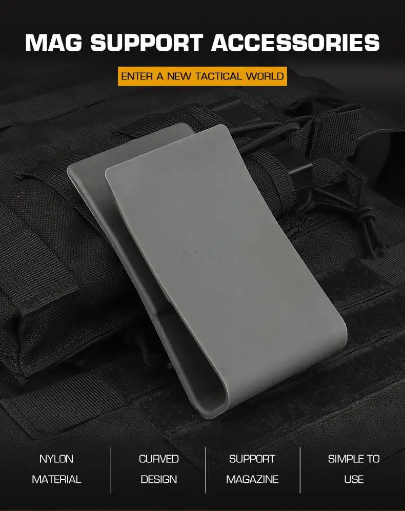 Funciona con bolsillos de nailon abiertos en la parte superior, sin bungies y sin sacrificar la retención del cargador.