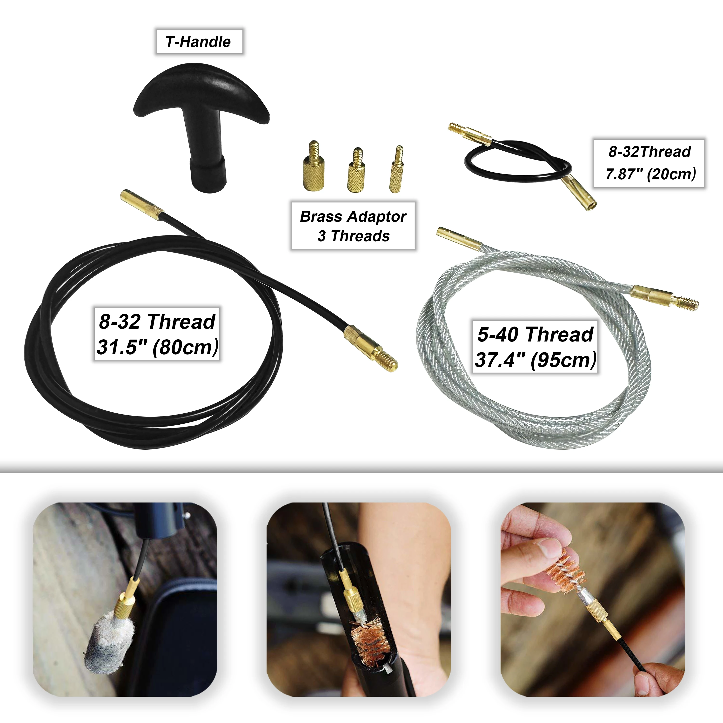 4. CUIDADO SUPERIOR AL INTERIOR: Nuestros cables son flexibles y se enrollan para un fácil almacenamiento y comodidad.Hechos de acero sólido, tienen un suave revestimiento de nailon para que puedas limpiar tu barril sin dañar el orificio ni el acabado de tus pistolas o rifles.