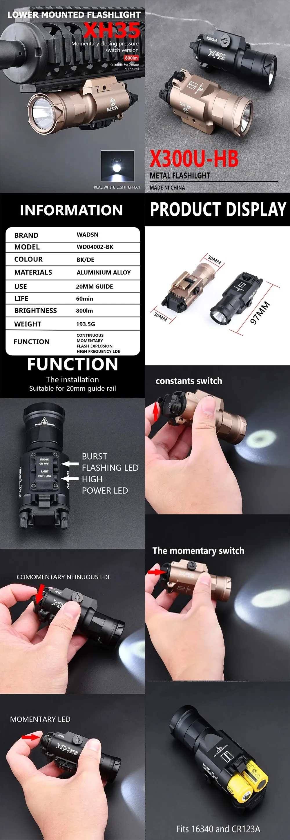Juego de linterna táctica X300, luz estroboscópica X300V Scout, X300U, XH35, Wadsn, pistola de caza, interruptor de doble función