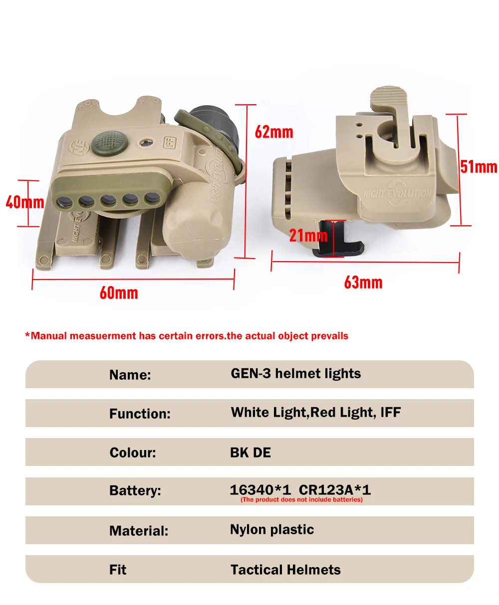 Juego de luces tácticas para casco GEN-3, LED blanco Wadsn, linterna de seguridad de supervivencia IFF roja, accesorios de caza Arisoft para sombrero, riel de 20MM