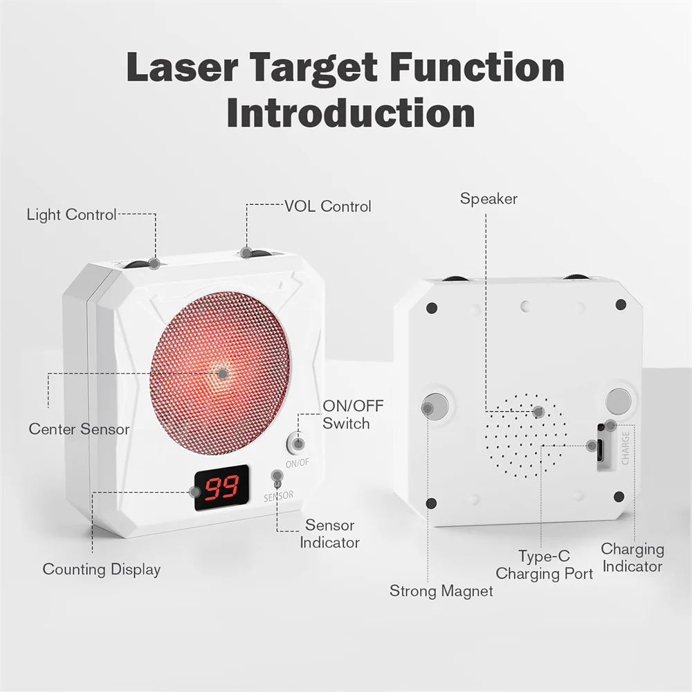 El objetivo electrónico es pequeño y portátil, puede usarlo en la mesa, el piso, la pared, el refrigerador y en cualquier lugar que desee.El puerto de tornillo de 1/4" en la parte inferior del objetivo de entrenamiento de fuego seco permite montarlo en un soporte para su uso, y el diseño magnético en la parte posterior le permite fijarse a cualquier superficie plana de acero para un entrenamiento versátil.