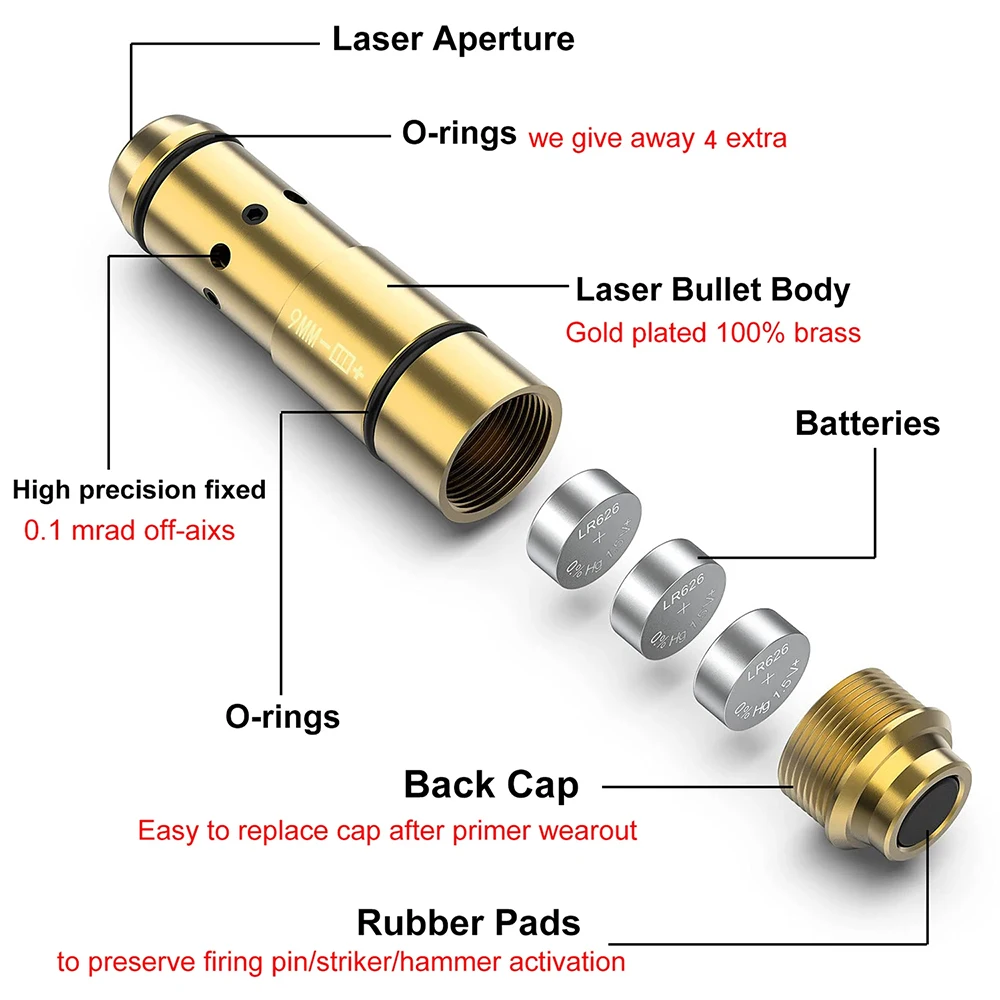El cartucho de entrenamiento es clase IIIA.El cartucho de fuego seco está hecho de cobre y acabado mediante mecanizado de precisión CNC para mayor durabilidad.El cartucho de entrenamiento viene con 6 pilas, 4 anillos de goma adicionales y 1 tapa trasera adicional.
