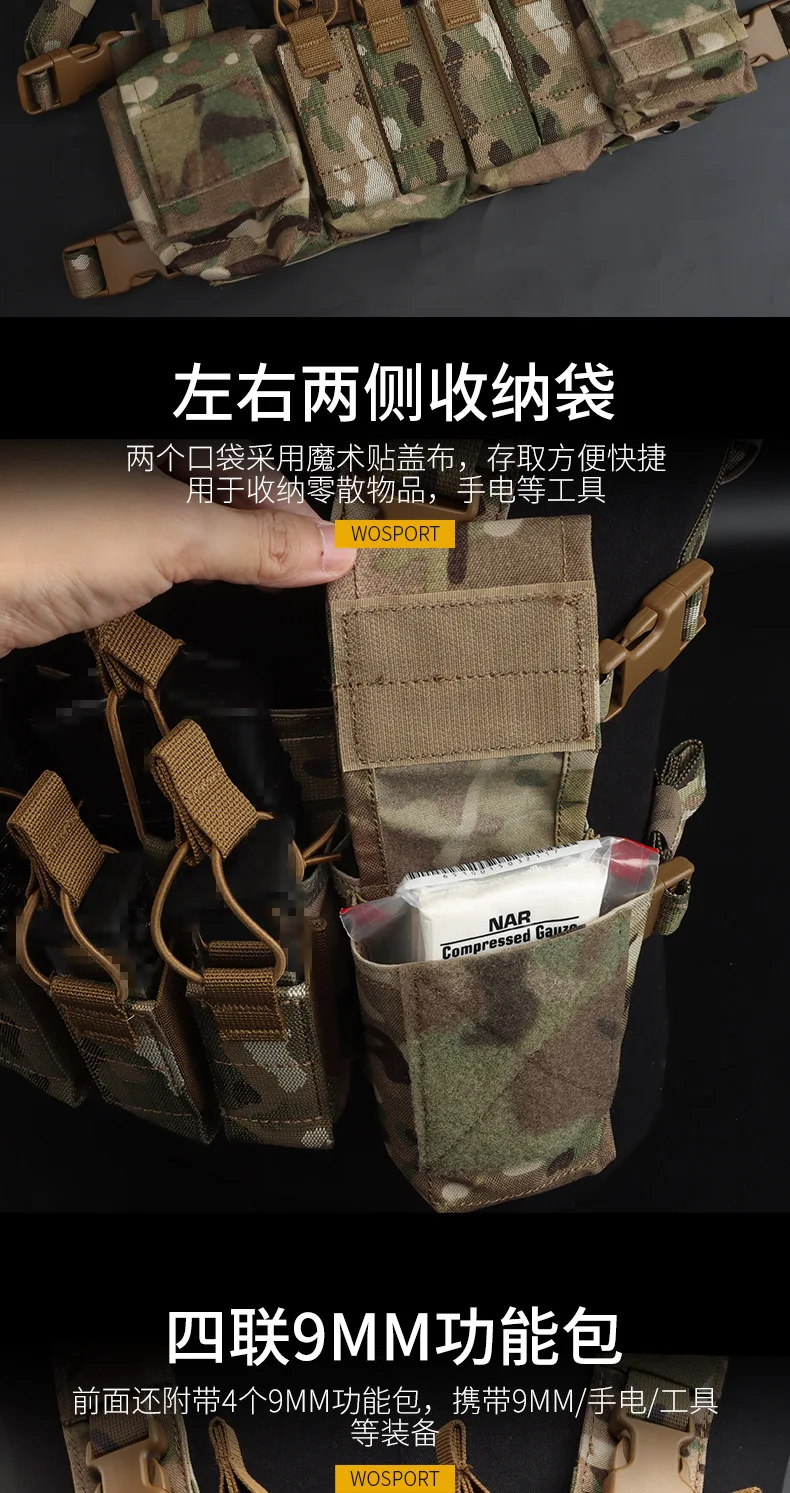 Juego de Paintball portátil táctico, chaleco expandible multifuncional con función Quad de 9MM, organizador varios