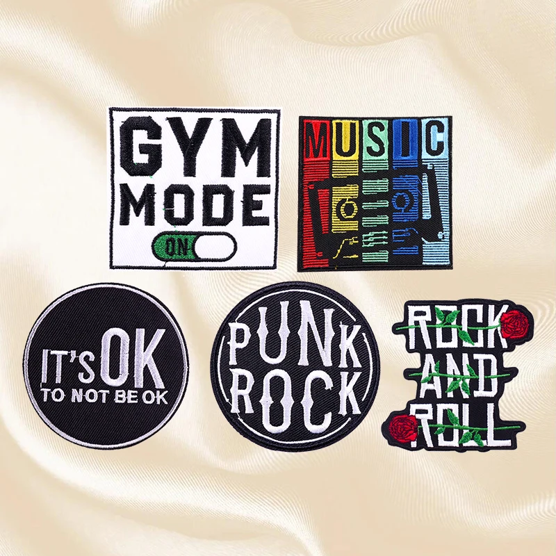 Juego de parches de cinta de roca/parche bordado con letras, moda de gimnasio DIY, parches bordados para ropa, parches para planchar para ropa, insignias para coser