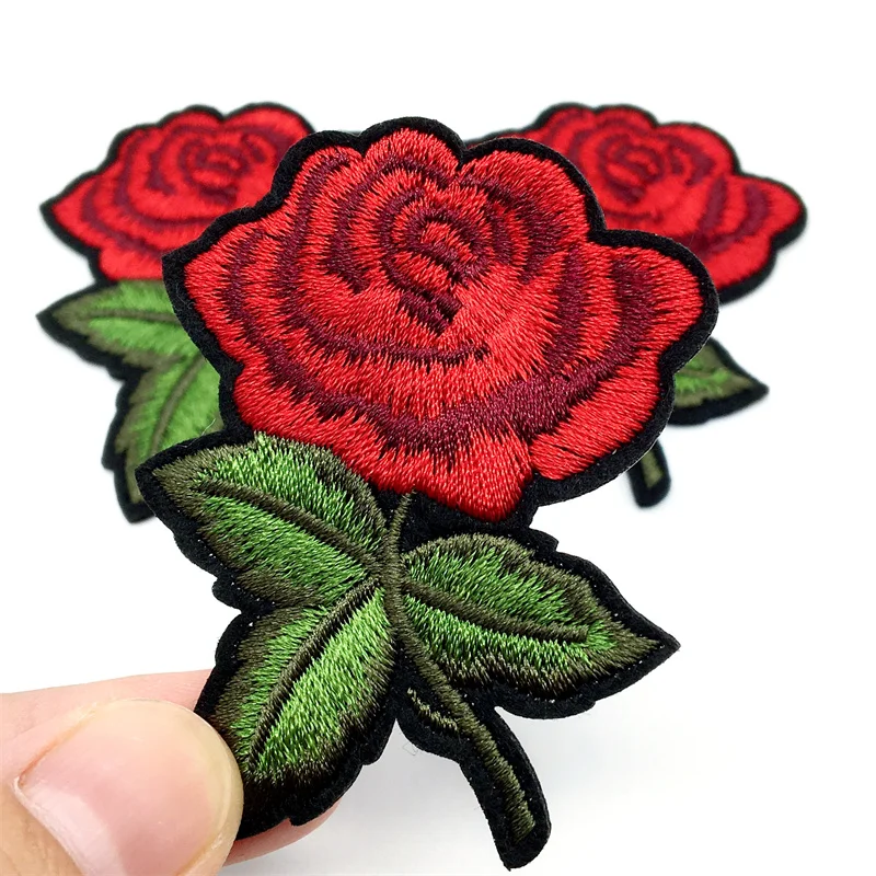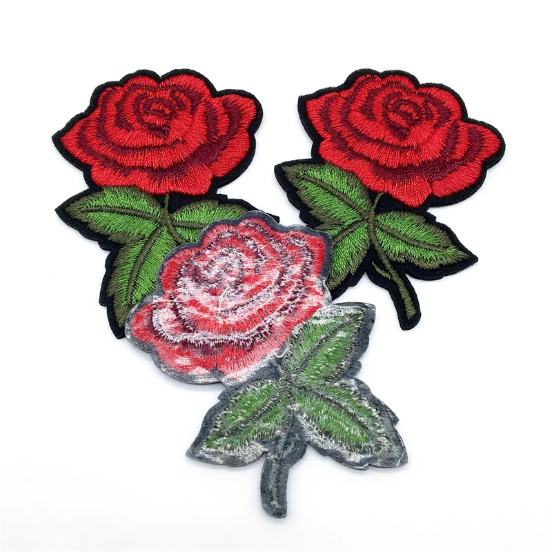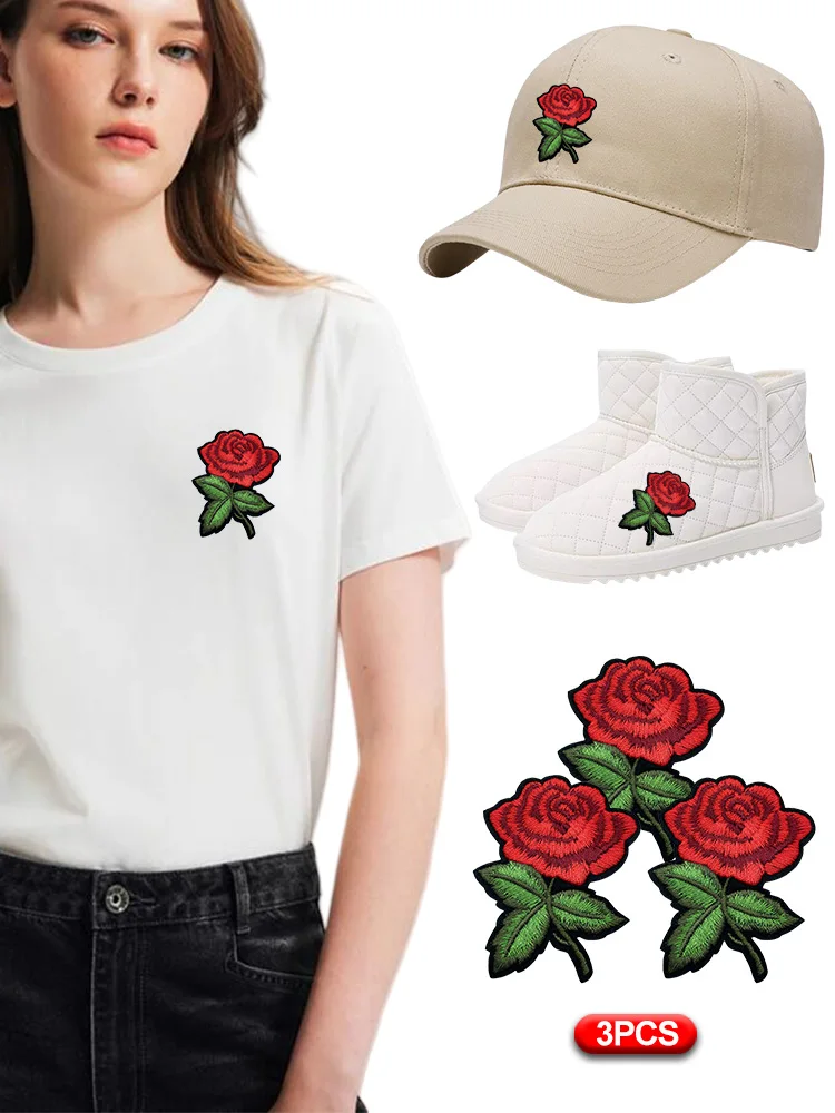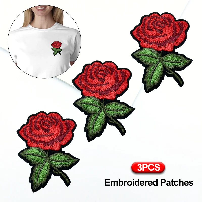 Juego de pegatinas de tela bordadas con rosas rojas de 3 piezas, adecuadas para Vaqueros, chaquetas, ropa, bolsos, sombreros, pegatinas decorativas
