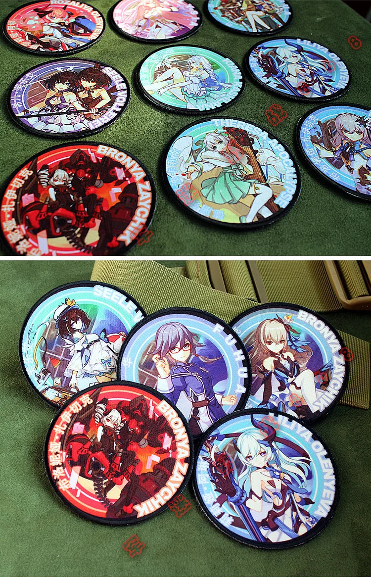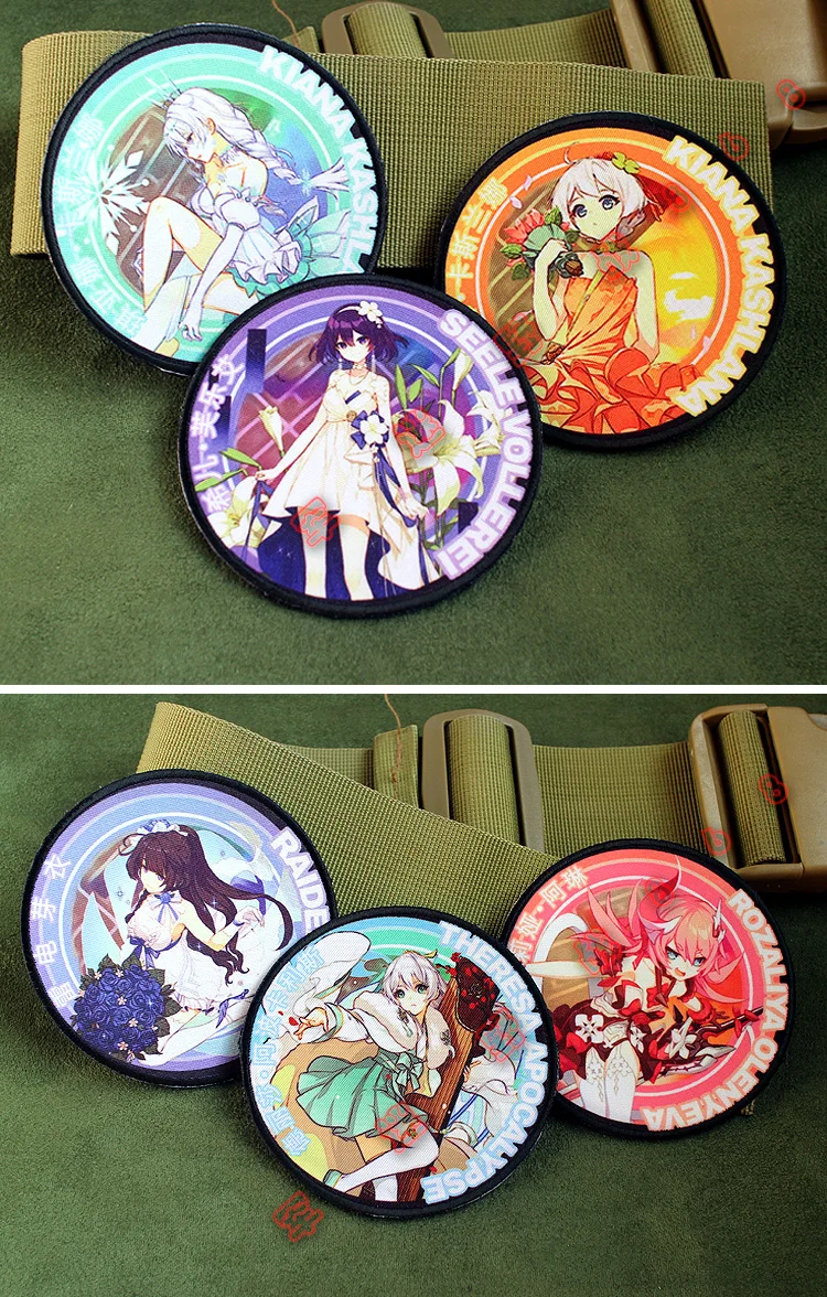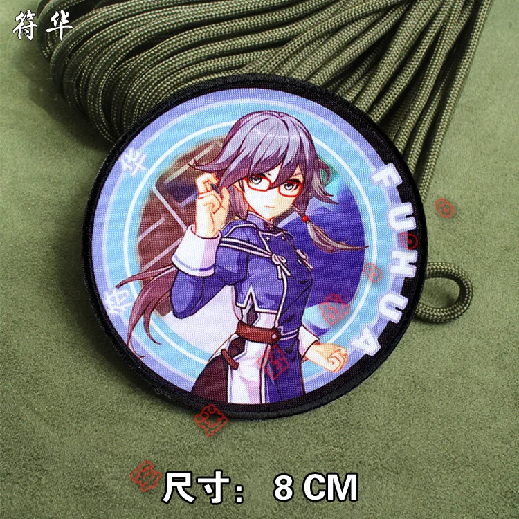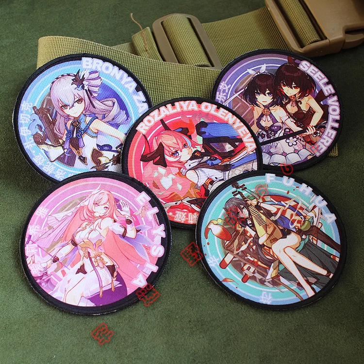 Juego personajes de Anime niñas parches estampados brazos bidimensionales tácticos Fu Hua SEELE VOLLEREI equipo redondo DIY insignias adhesivas