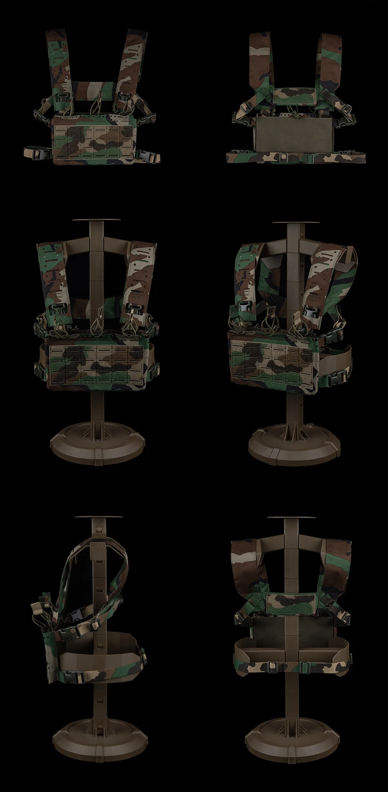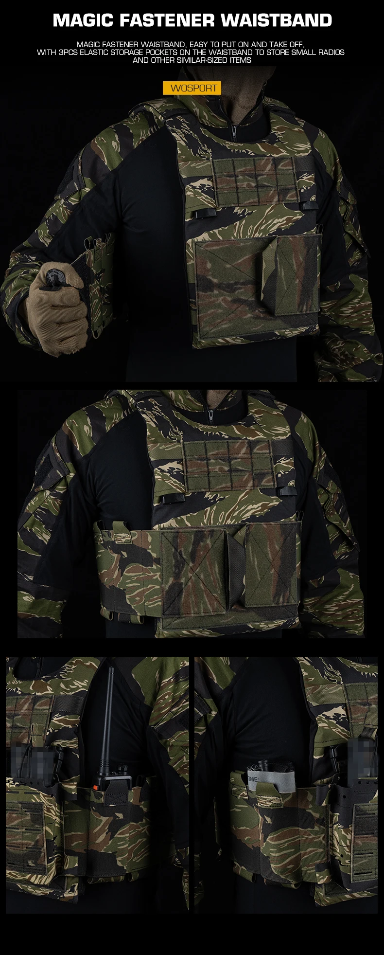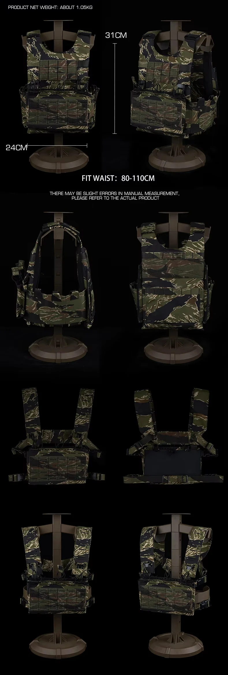 Juego de portador de placa de LV-119, chaleco de aparejo de pecho de bosque ligero con rayas de tigre de liberación rápida MOLLE 2 en 1 para Cosplay de caza Airsoft
