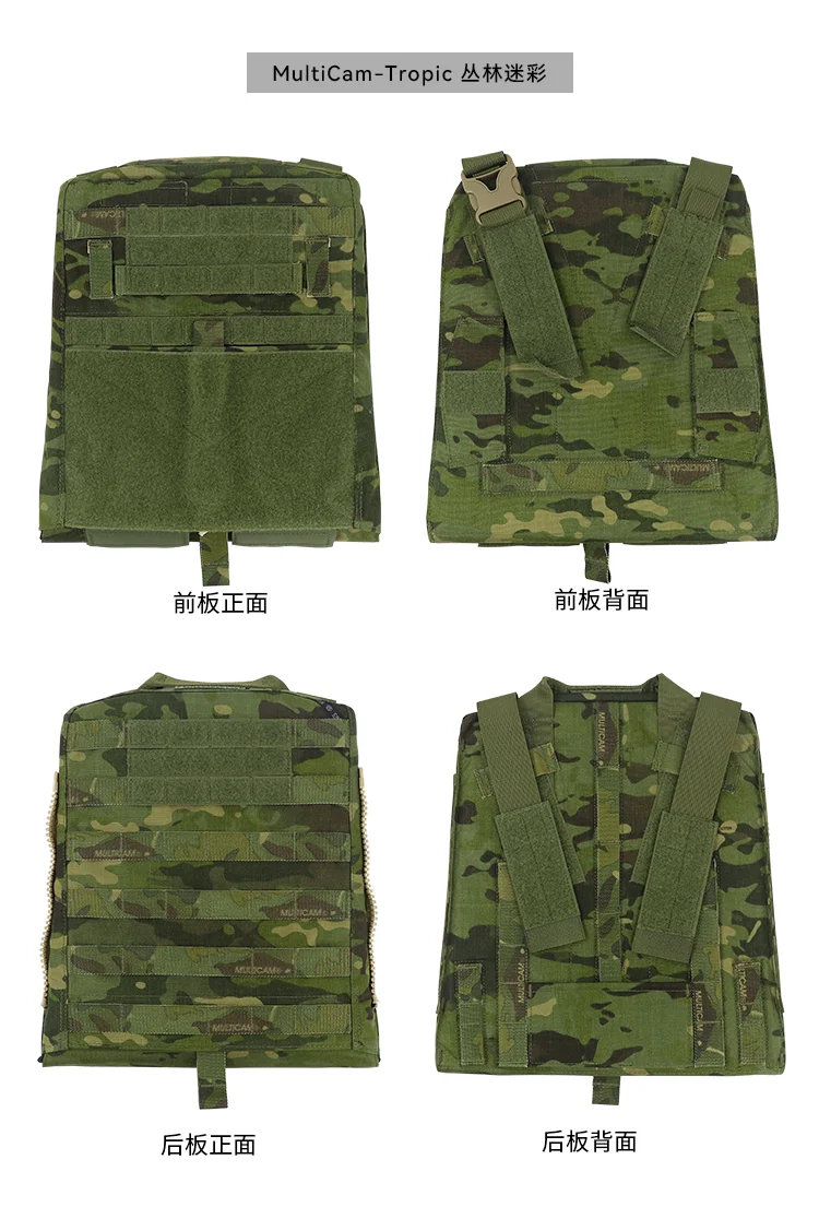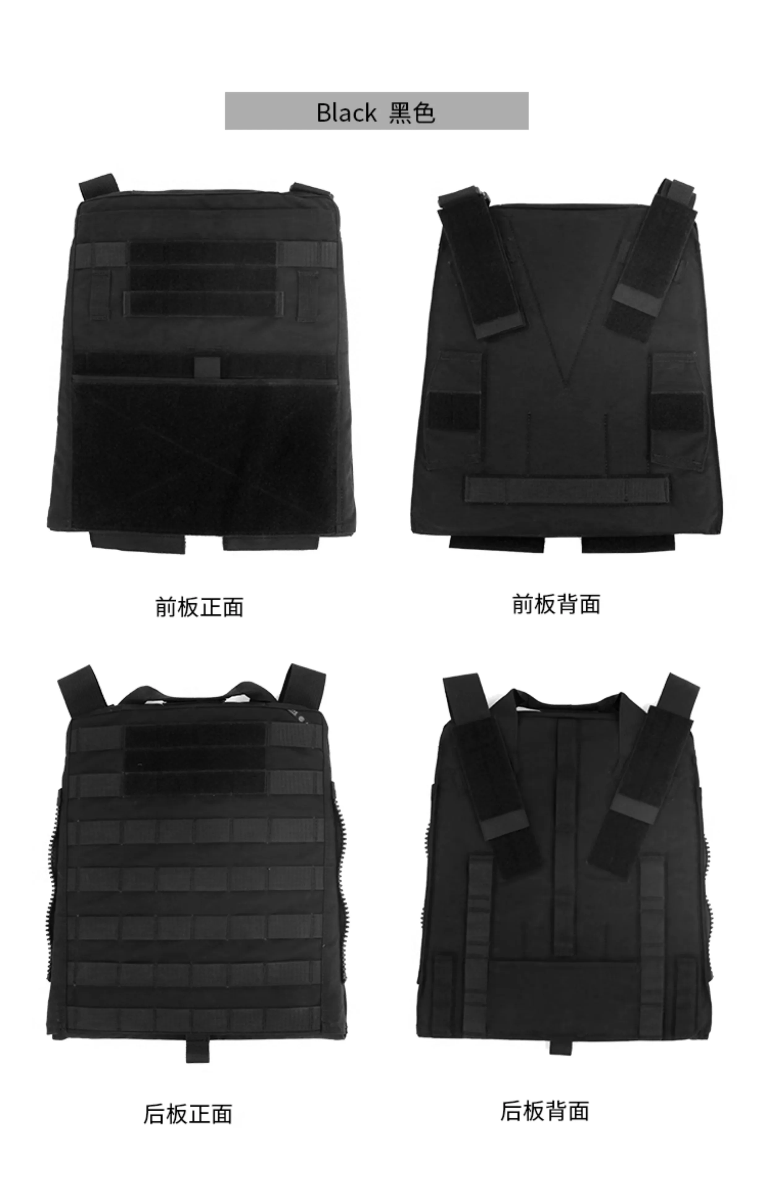 The front and rear main body can be filled with protective plates (plates not included).