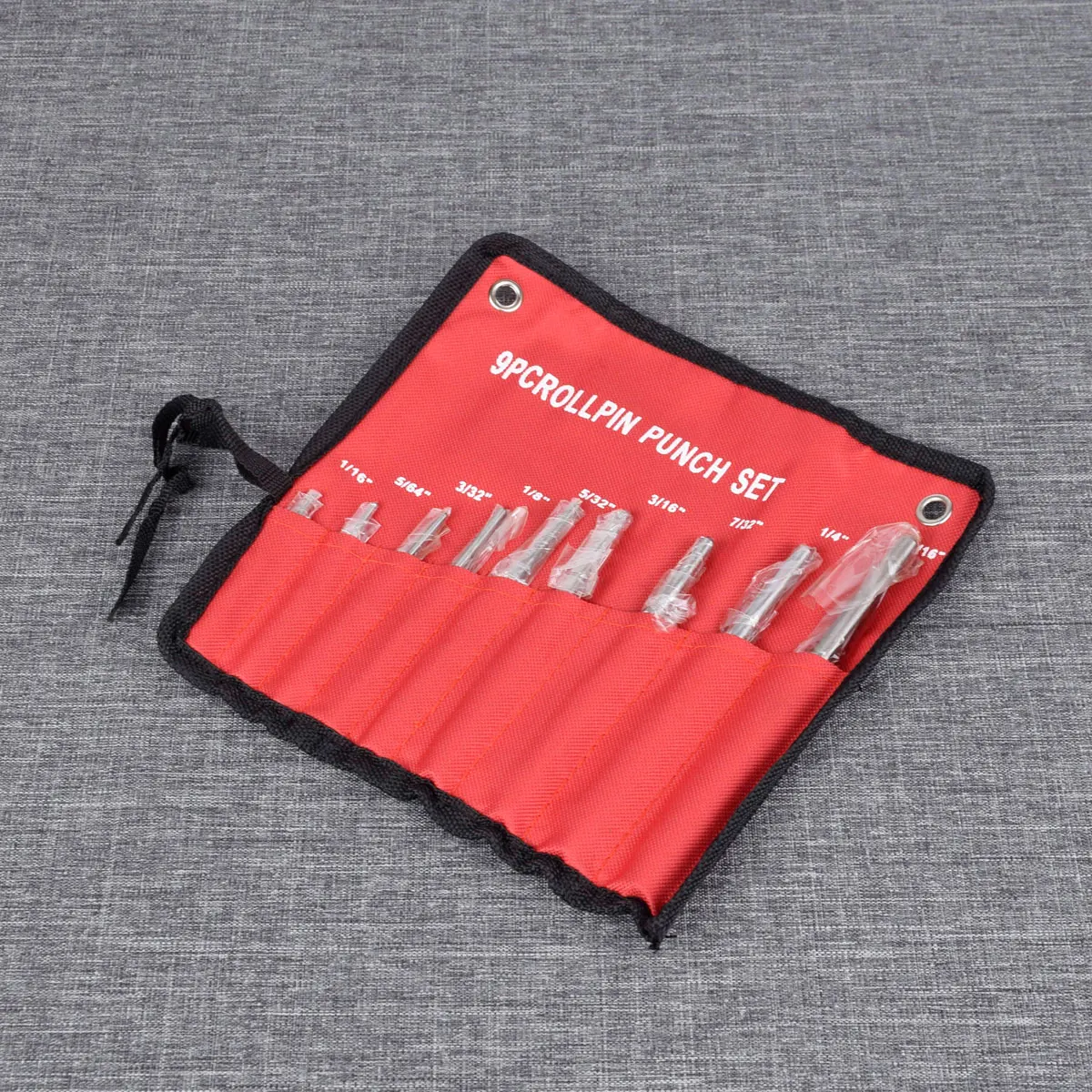Juego de punzones de rodillo de 9 Uds con bolsa de almacenamiento, herramientas de reparación para quitar el punzón de Smithing con punzones de pasador de bloque de banco y martillo