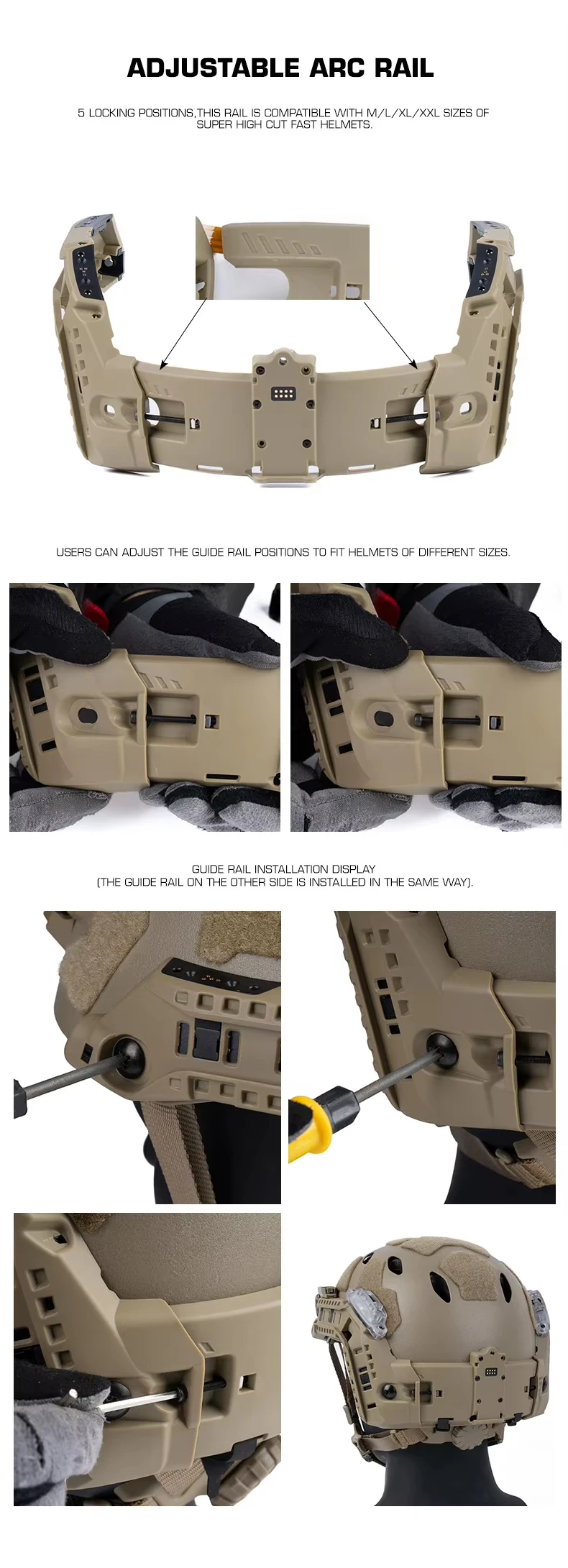 Juego de rieles ARC modulares WOSPORT con 5 posiciones de bloqueo compatibles con tamaños M/L/XL/XXL de cascos rápidos de corte súper alto
