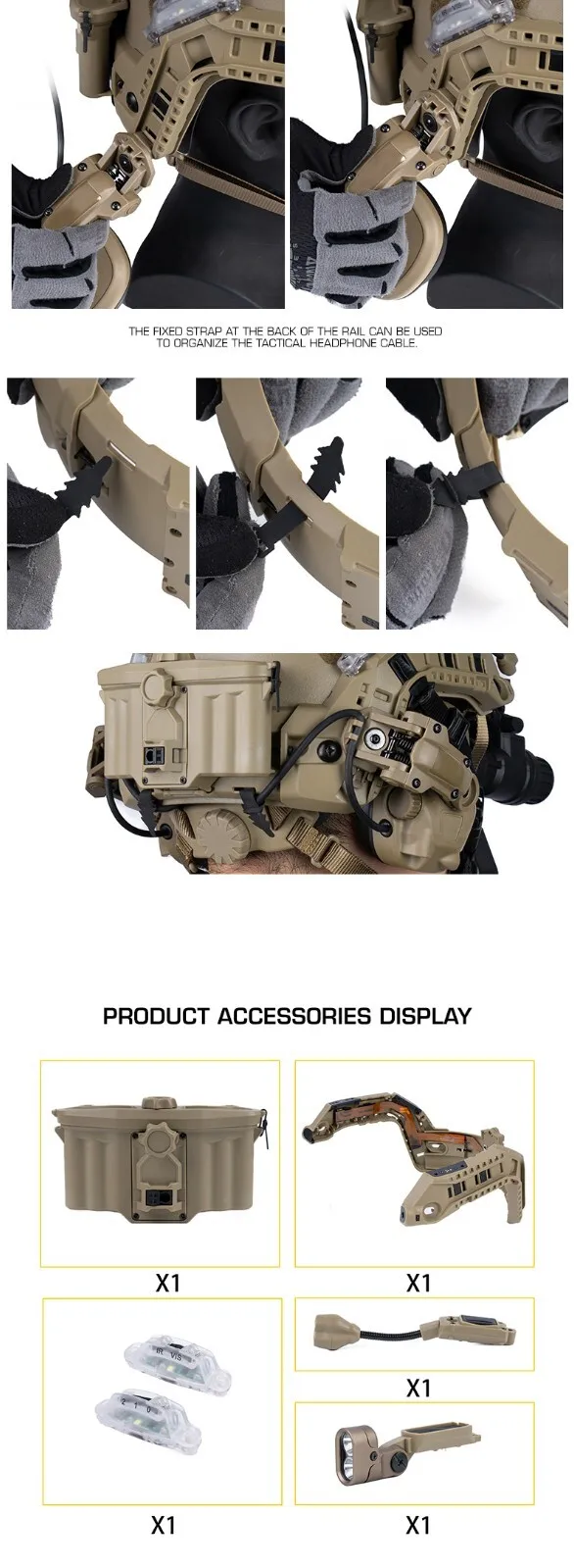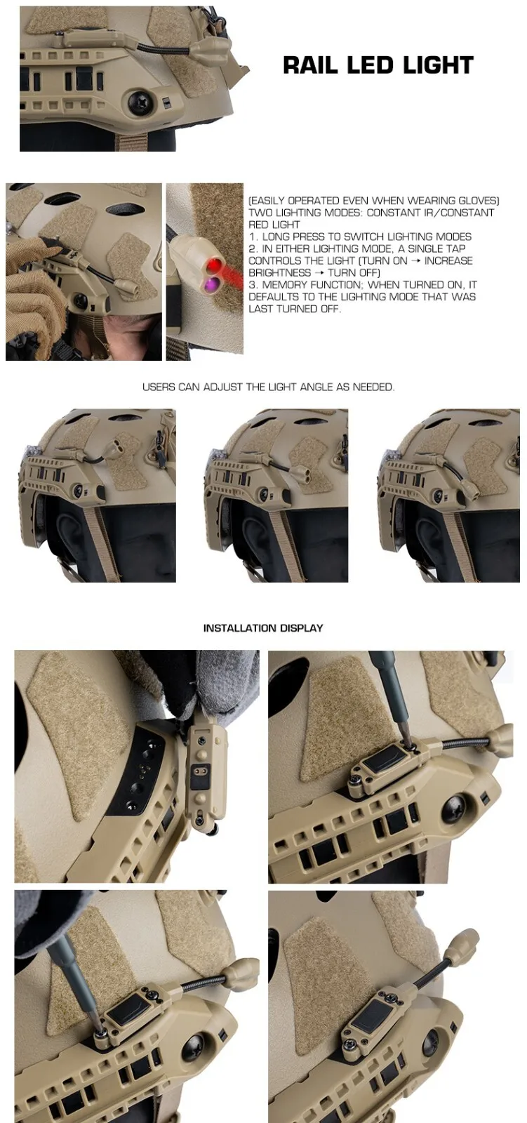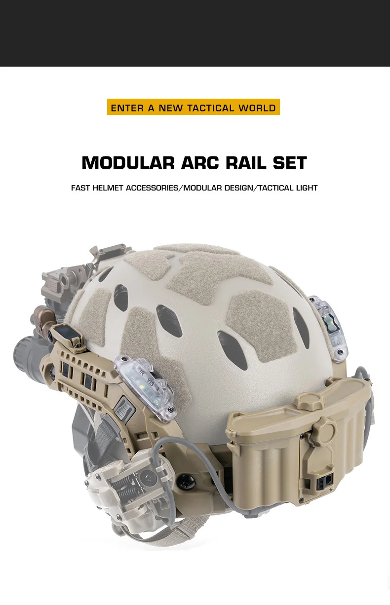 Juego de rieles de arco modulares tácticos con caja de batería LED rojo/blanco/Ir luces de señal de cabeza para casco rápido súper alto Airsoft Gear