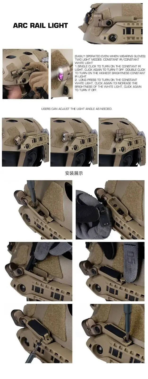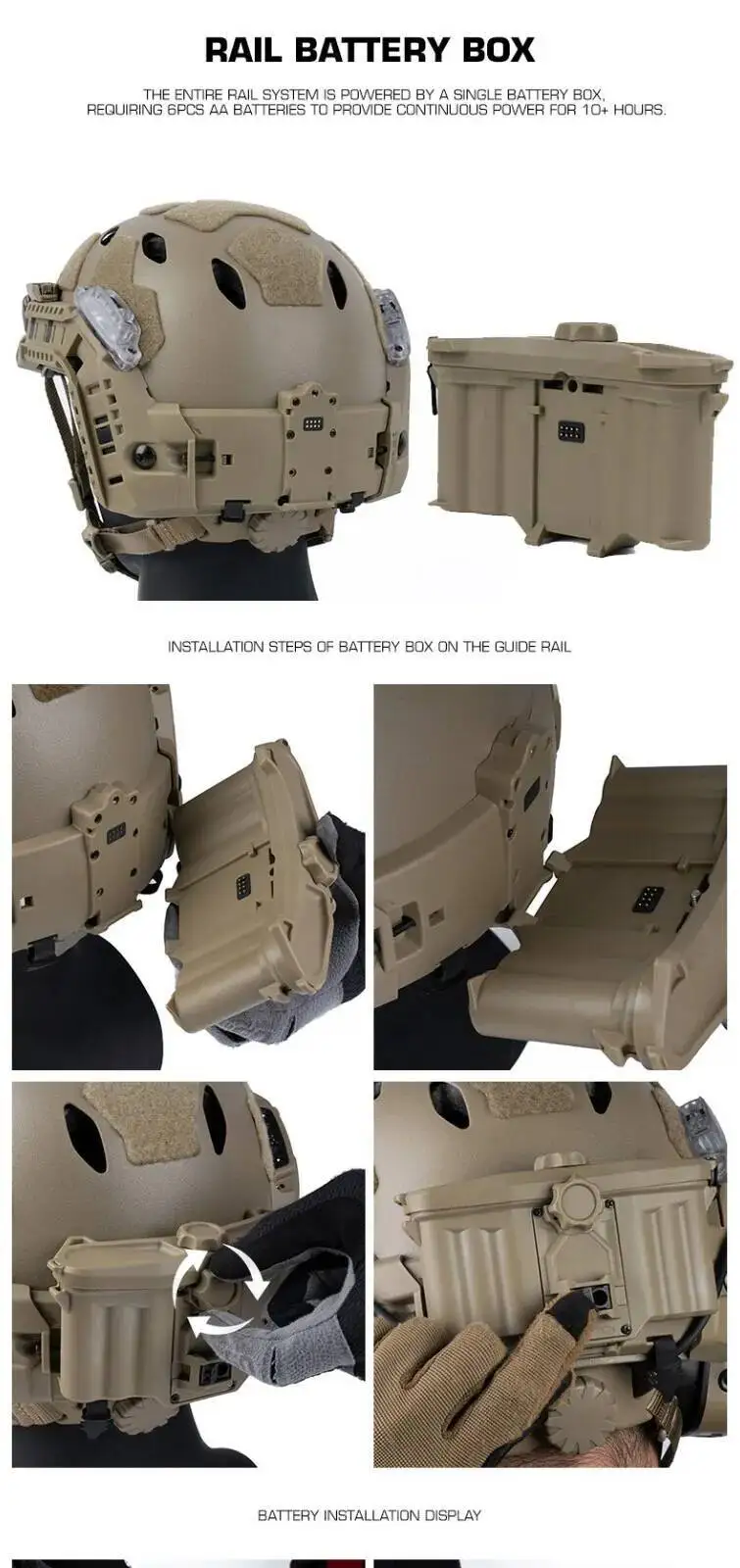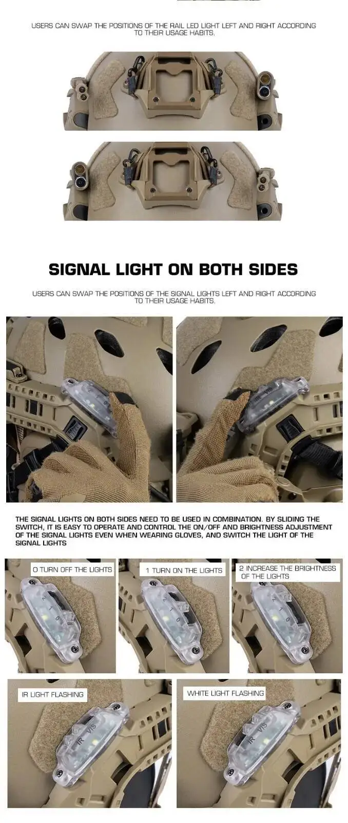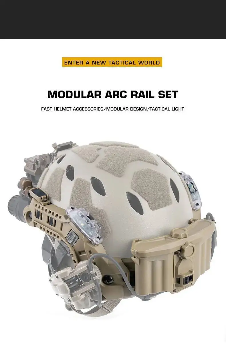 Juego de rieles de arco táctico modular con caja de batería LED rojo/blanco/Ir luces de señal de cabeza para casco rápido súper alto Airsoft Gear