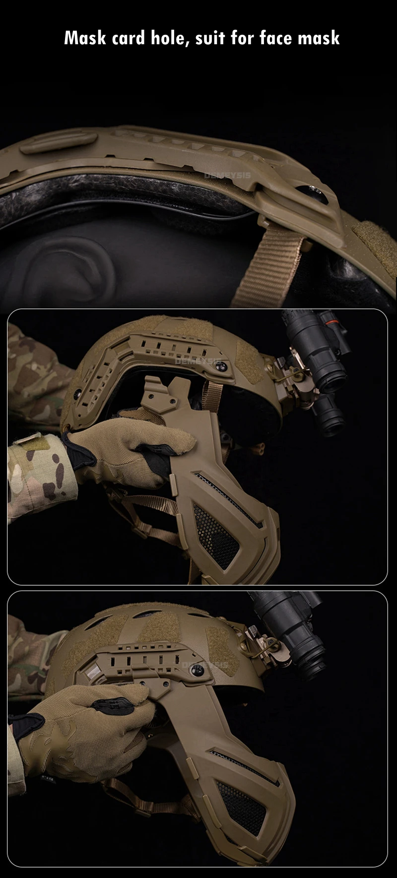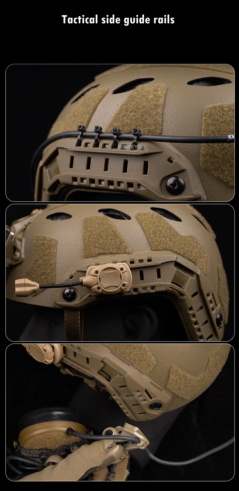 ●Rieles laterales del casco táctico. Puede adaptar otros equipos como máscaras, auriculares y luz de casco, etc.
