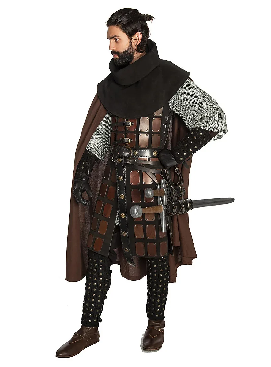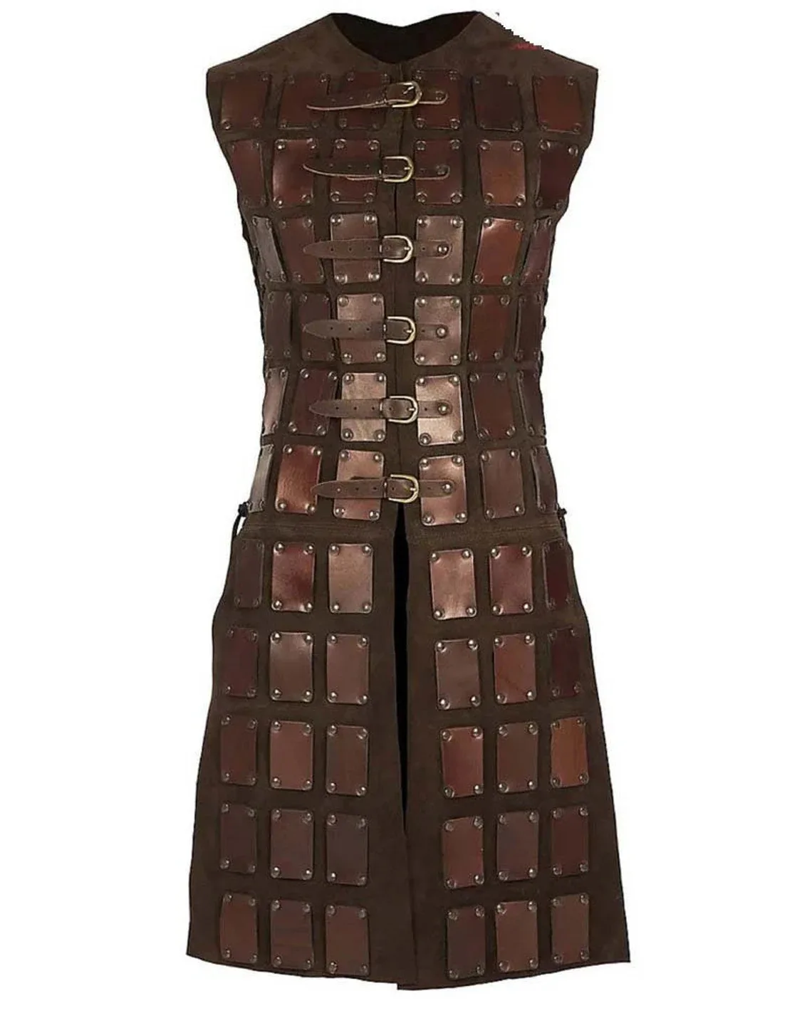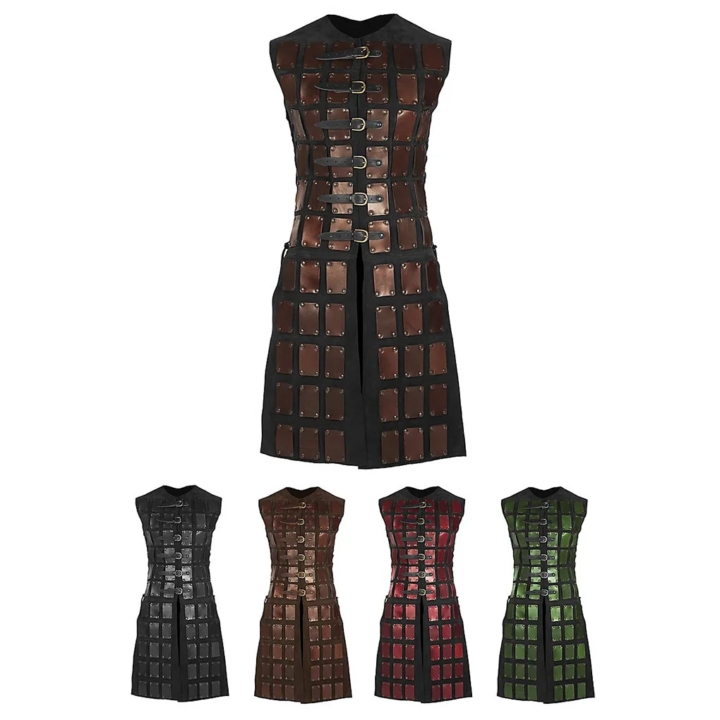 Juego de rol al aire libre de cuero Artificial, armadura vikinga Retro Medieval, tablero de pecho Alto hasta la rodilla